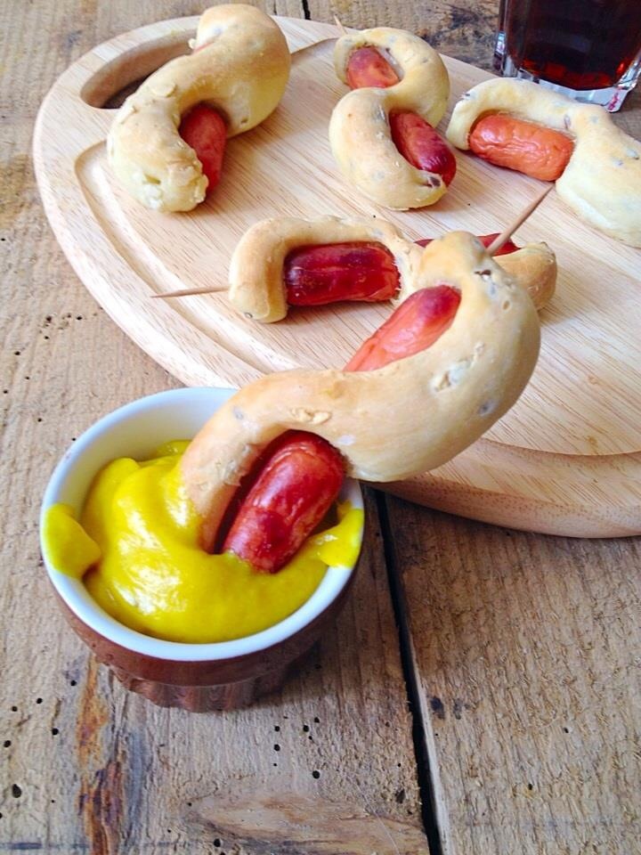 J’ai choisi de vous présenter une petite chose toute simple : des saucisses enroulées dans une pâte à pizza aux graines de lin.
