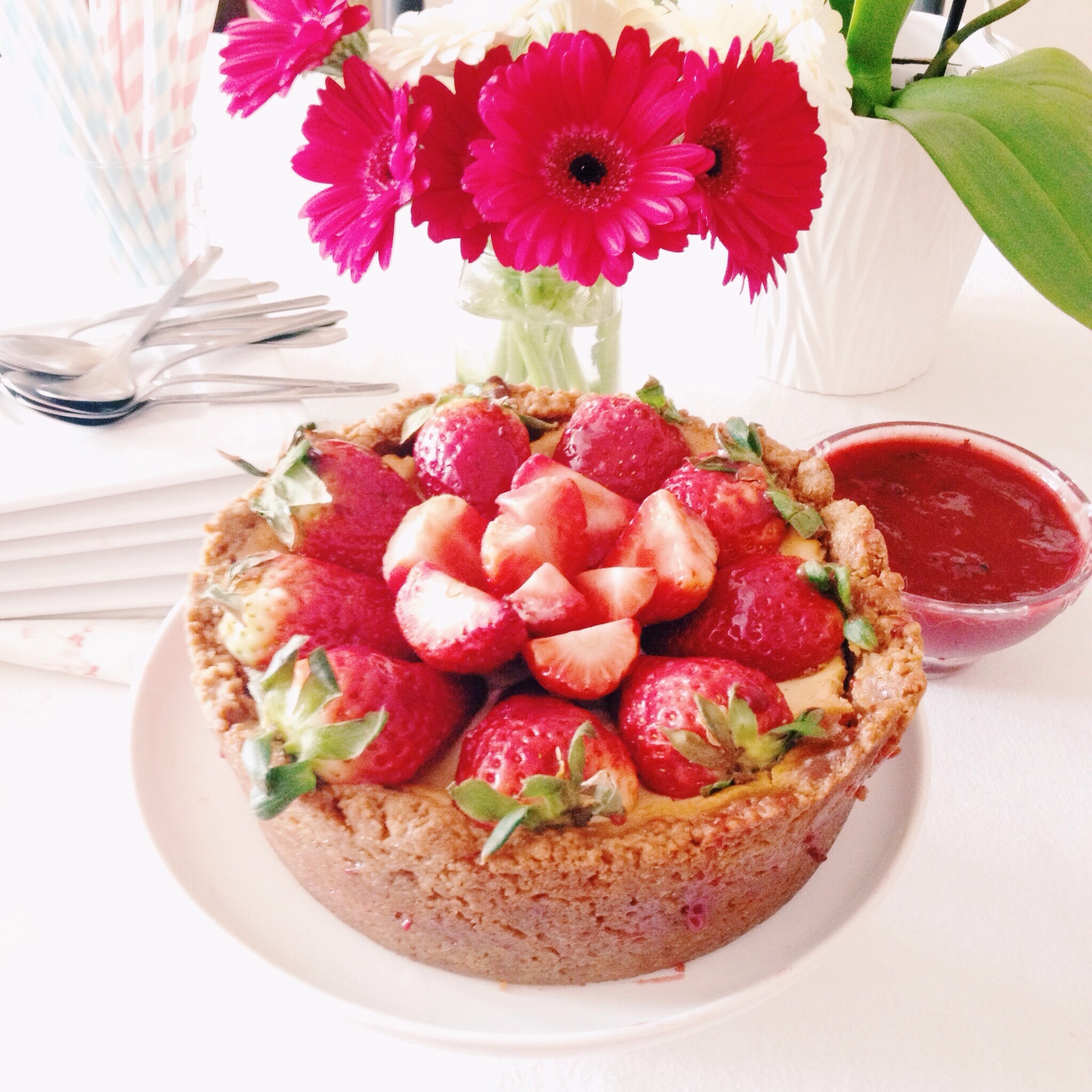 J’ai choisi de préparer un Cheesecake au chocolat blanc fève Tonka et coulis de fraises.