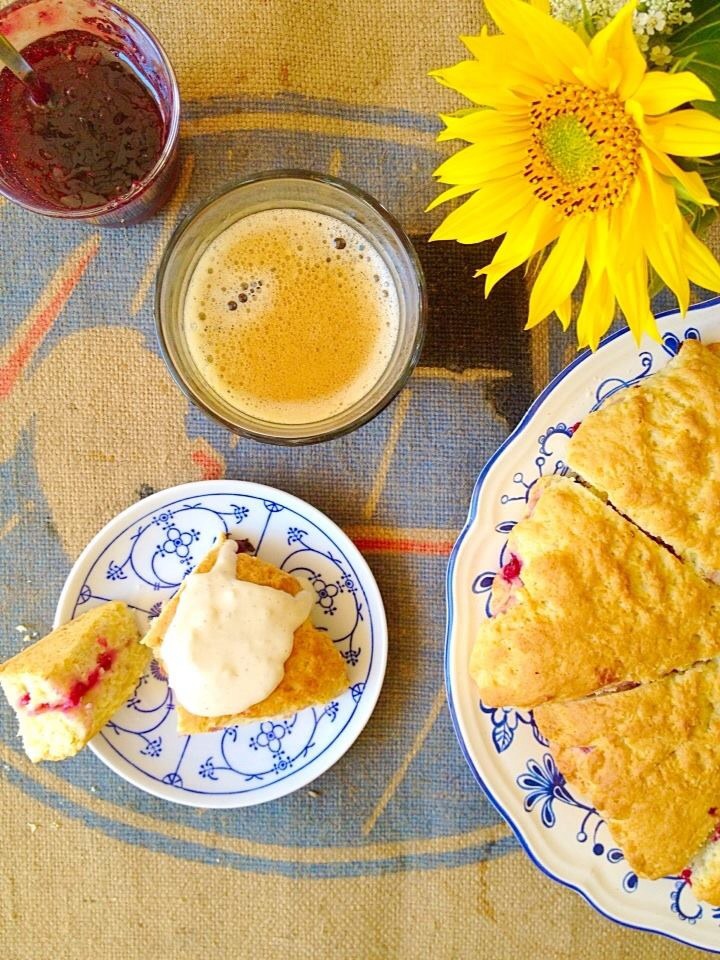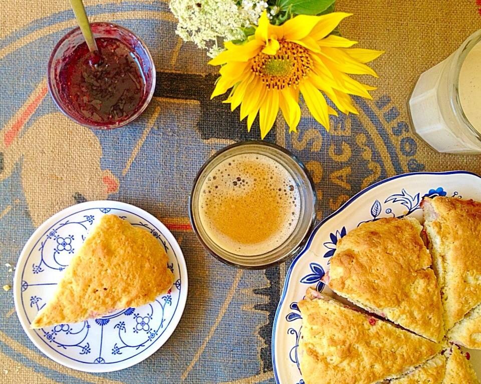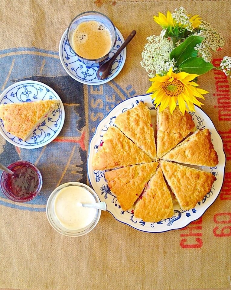 Les scones sont des petits d’origine anglo-saxonne qui sont généralement servis à l’heure du thé, coupés en deux tartinés de confiture et de crème fouettée.
