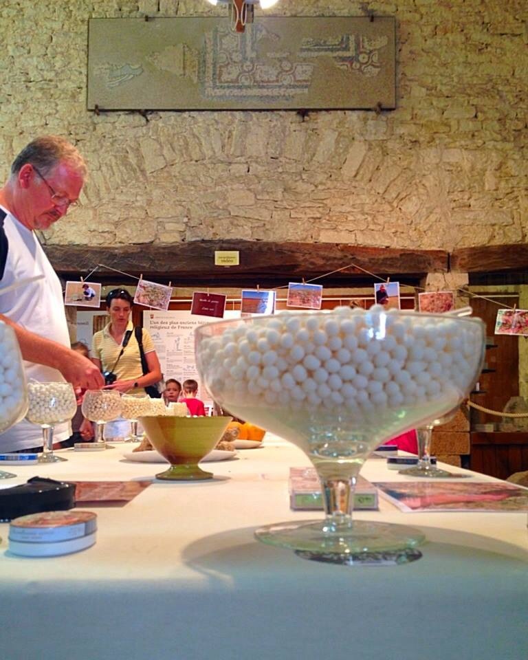 Elles sont en pleine mise en boîtes des célèbres dragées. Le sourire aux lèvres elles effectuent machinalement le même geste. J’ai l’impression d’être retournée à la fin des années 1800 et imagine les anciennes ouvrières faire la même chose plus de 200 ans en arrière.