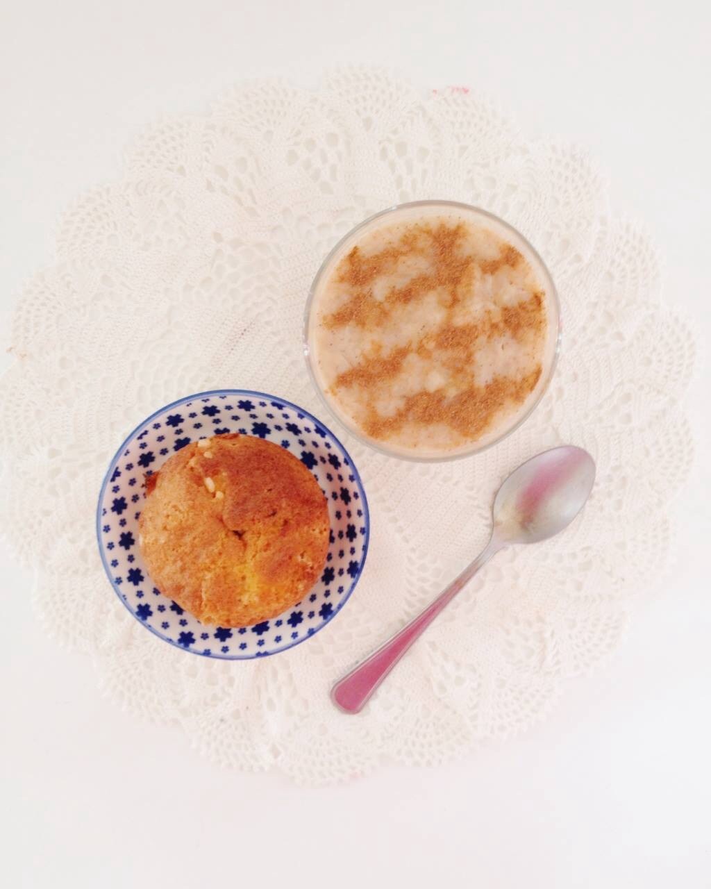 Quand le riz était cuit, elle le versait dans des petites terrines en terre cuite, genre à crèmes brûlées. Et y dessinait des motifs quadrillés ou des rosaces avec de la cannelle en poudre.