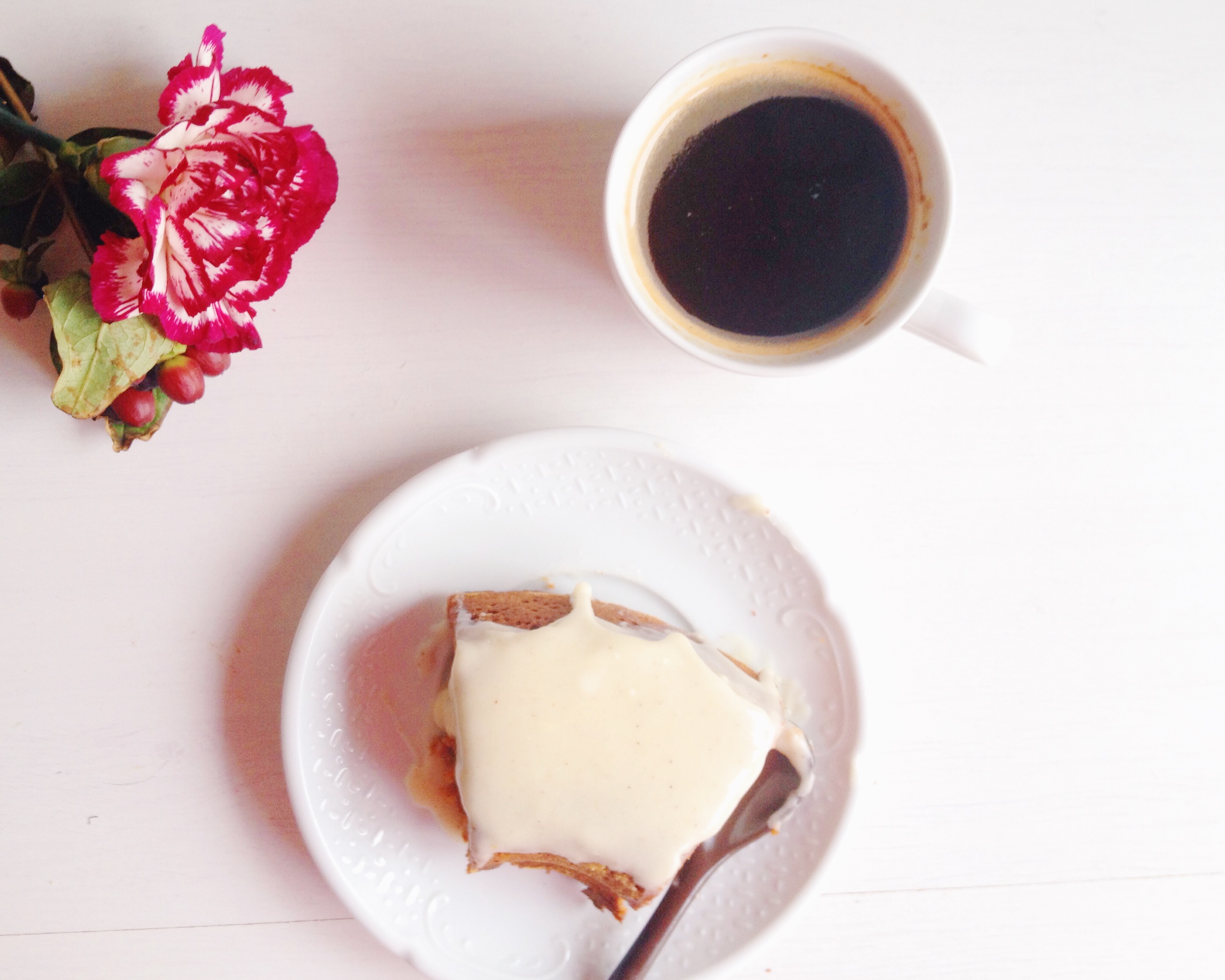 Le glaçage, c’est un choix perso que j’aime énormément surtout pour ce genre de gâteau. Il lui apporte une petite acidité qui contraste bien avec les épices.