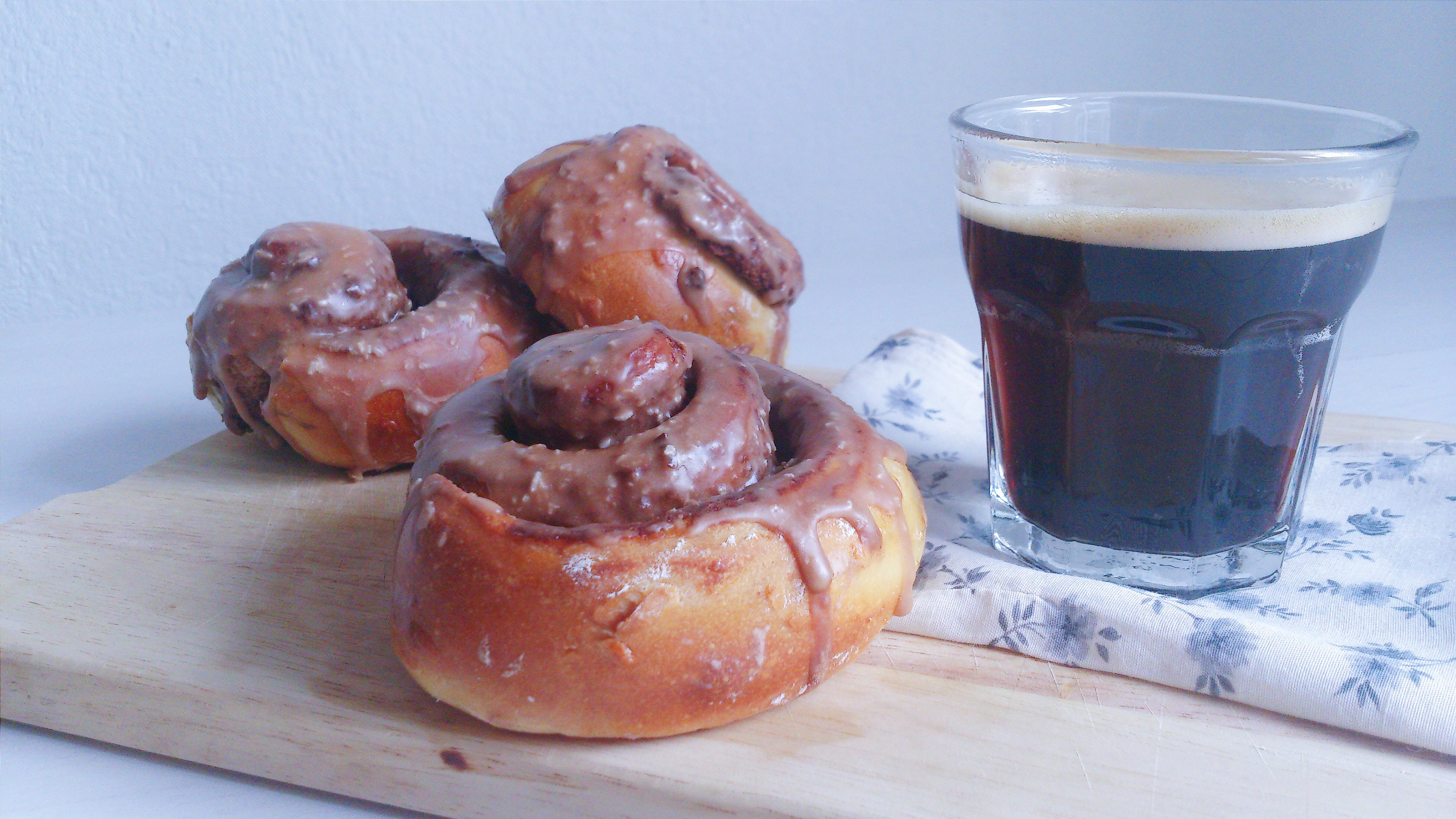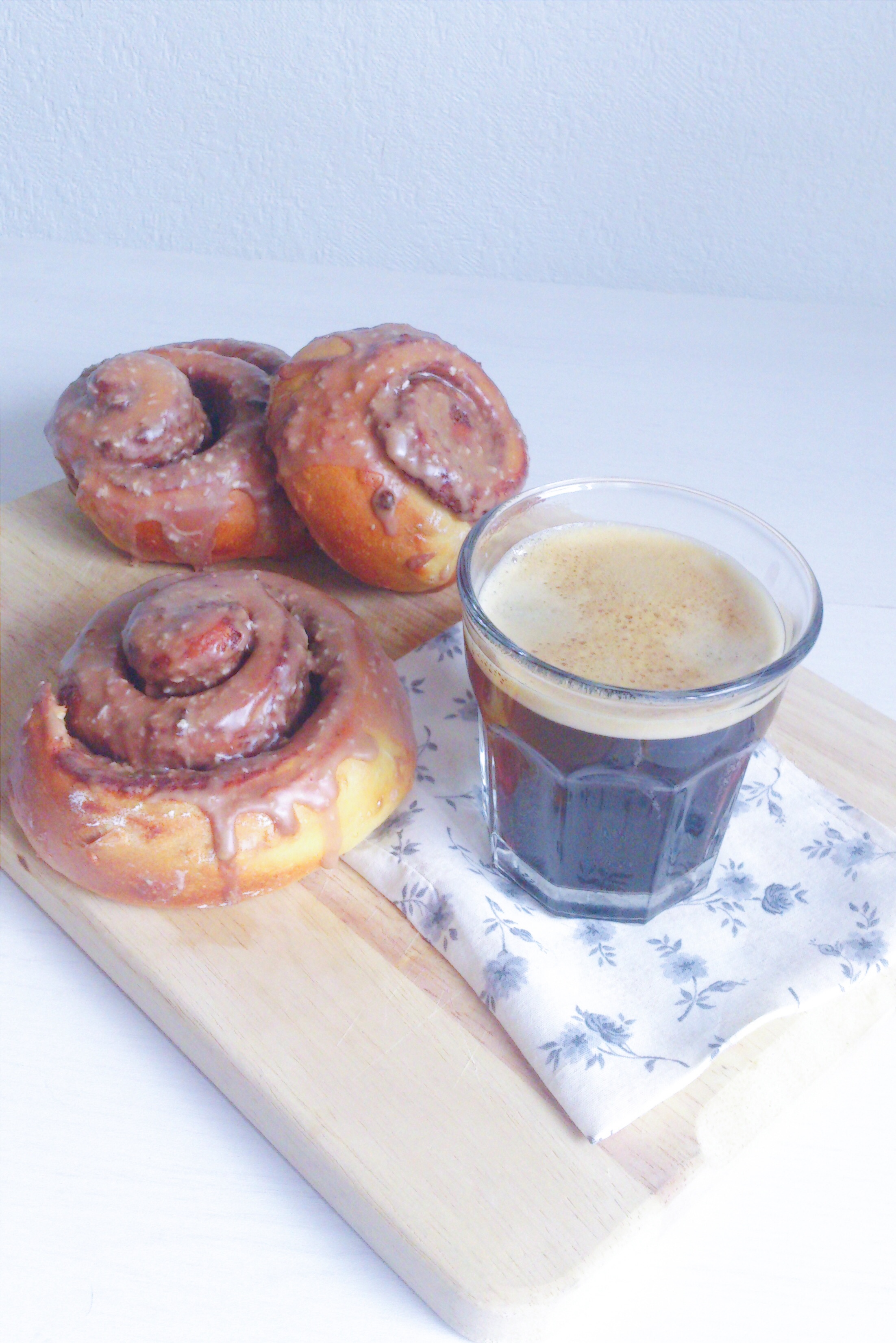 Aujourd’hui, des petits escargots à la pâte à tartiner que j’ai réalisée moi même (recette samedi) et glacés au café.