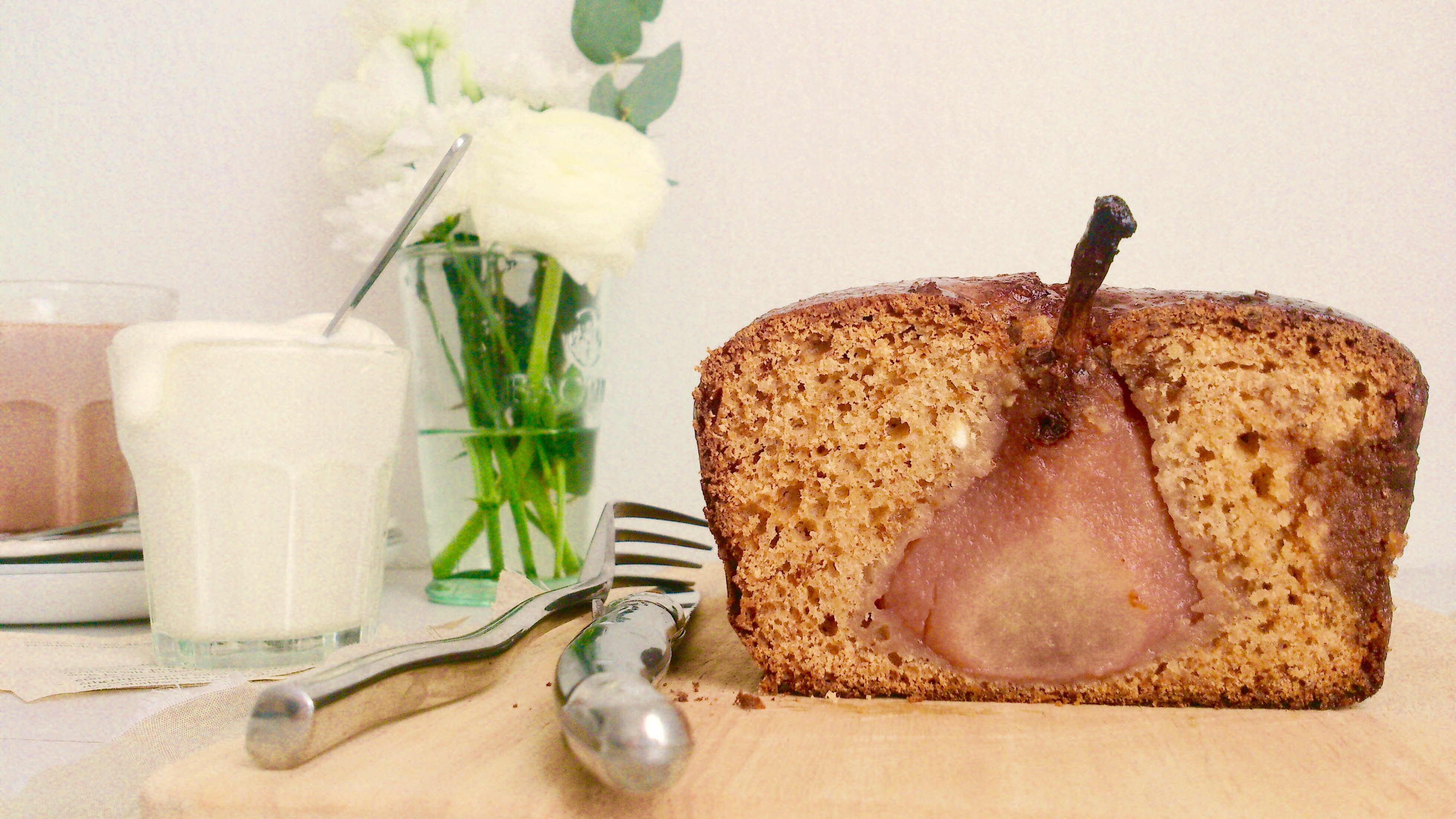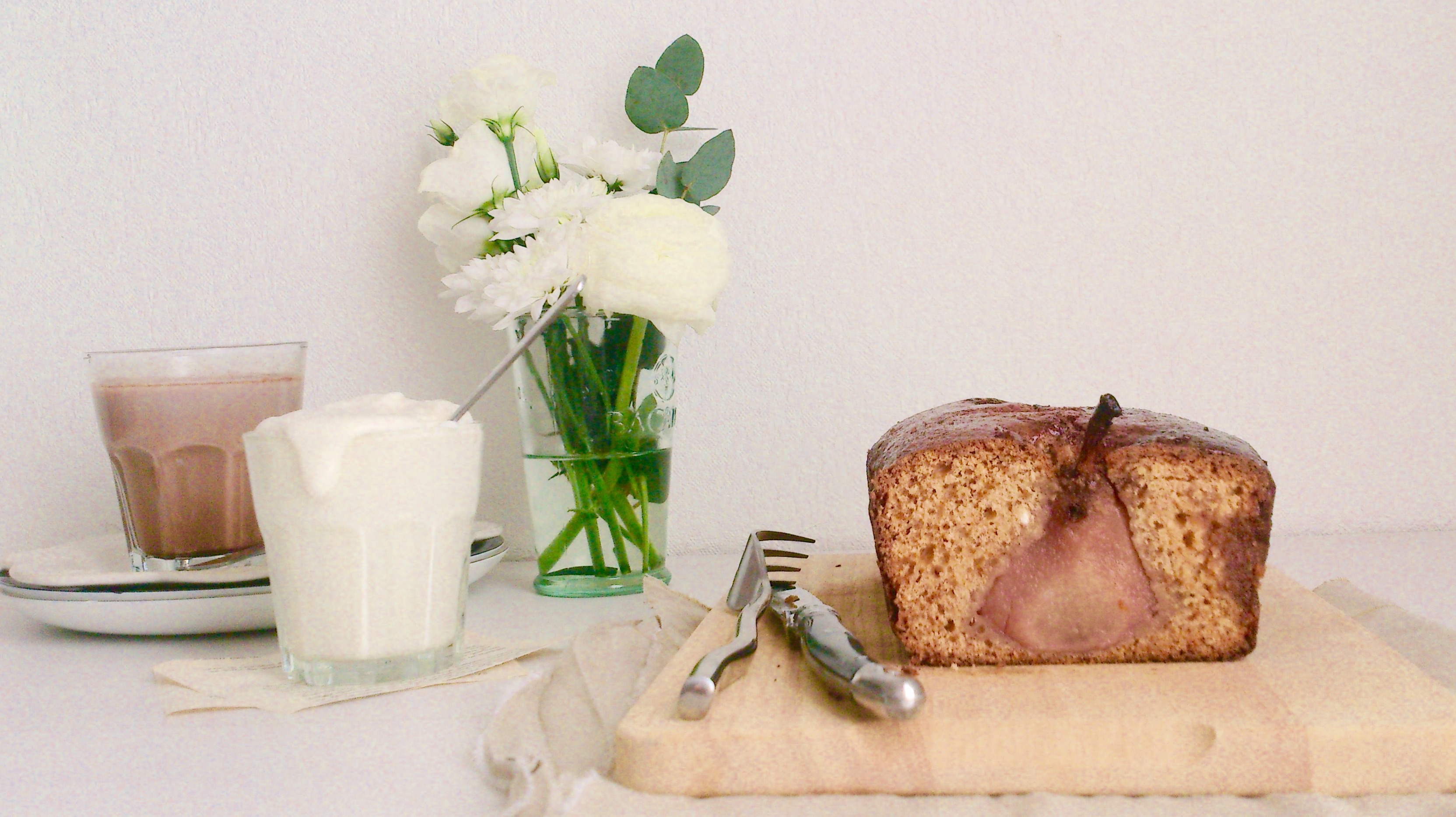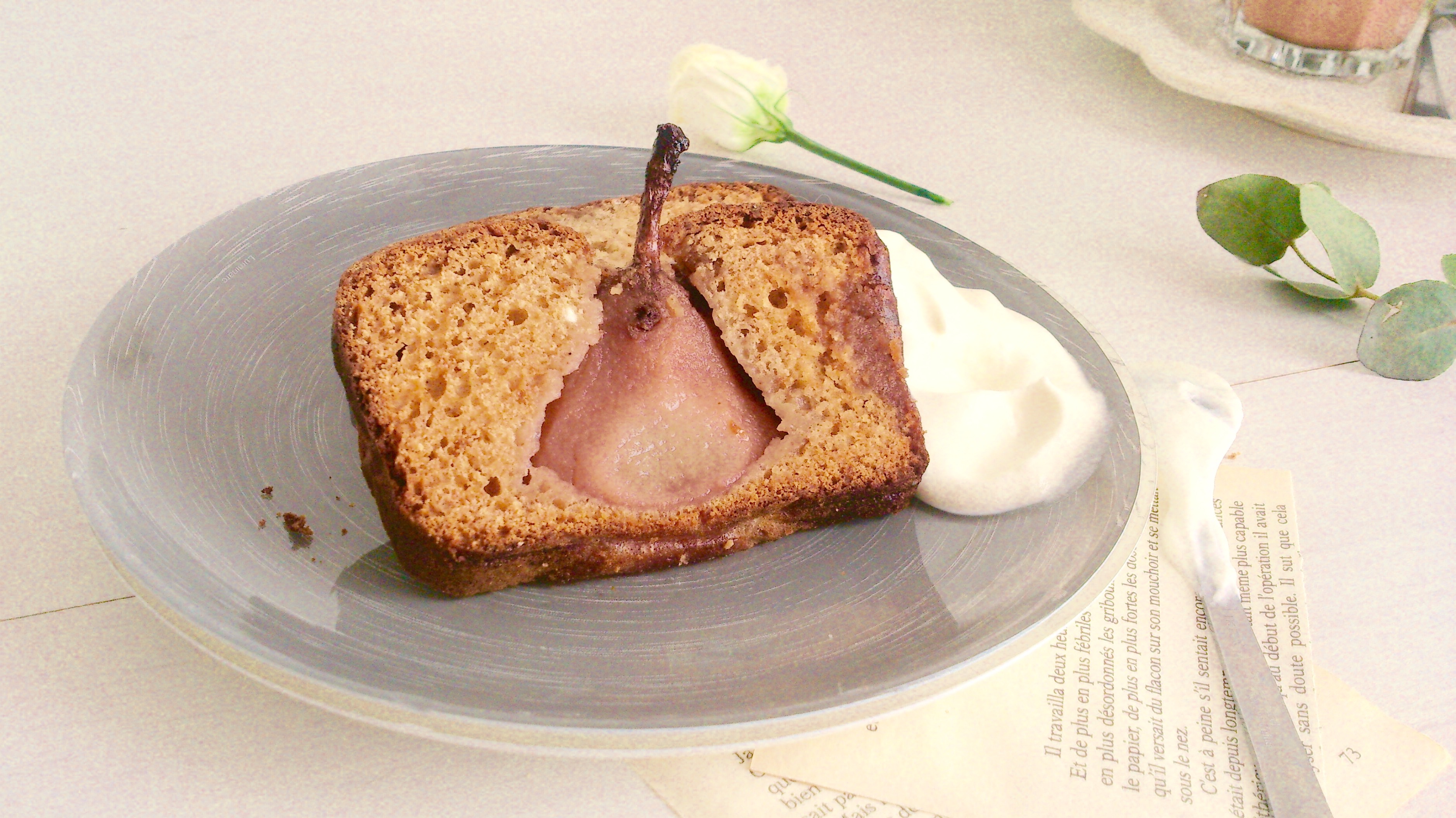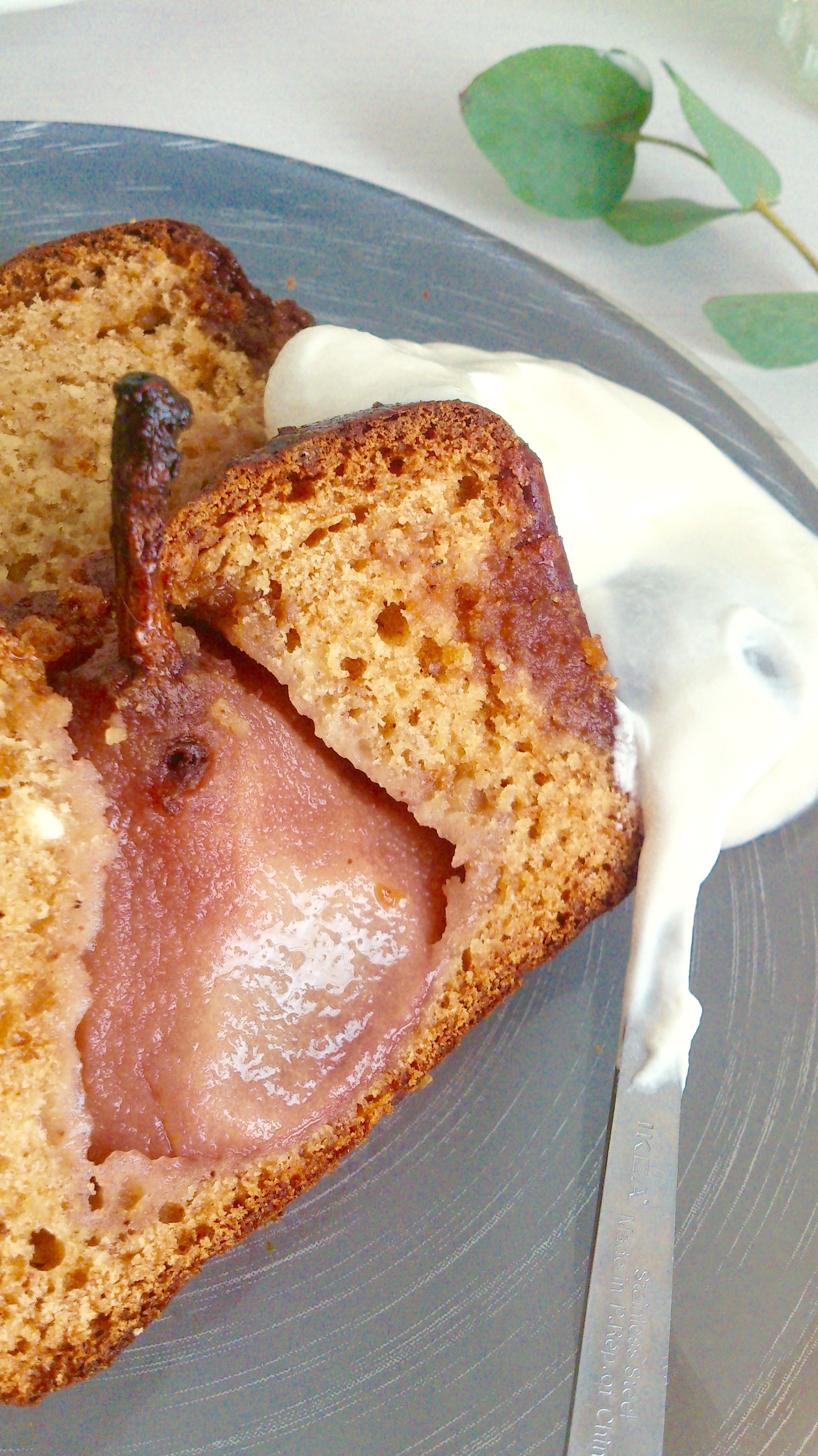 À mis chemin entre le gâteau et le pain, j’adore son côté rustique et à la fois esthétique apporter par les demis poires