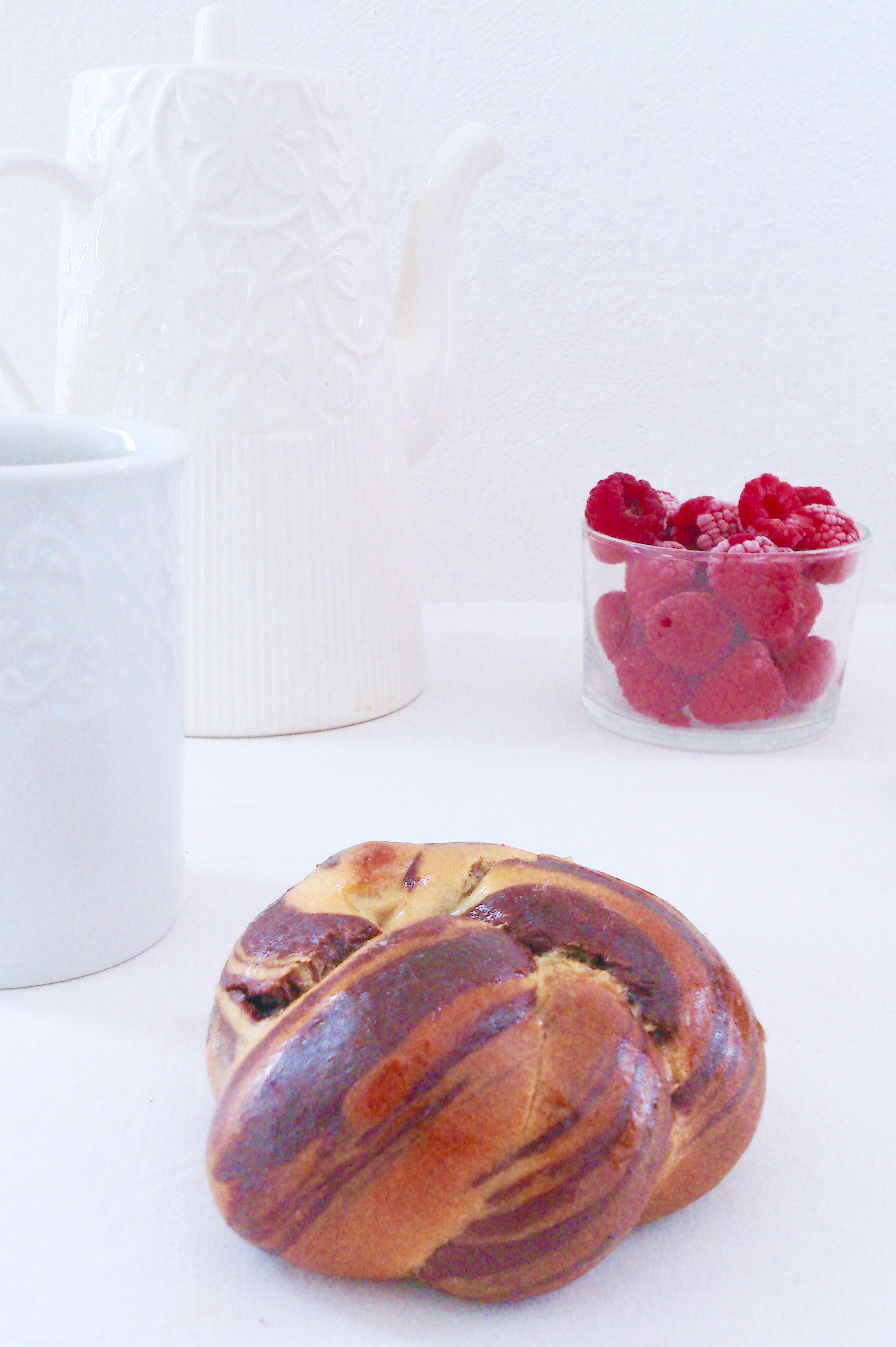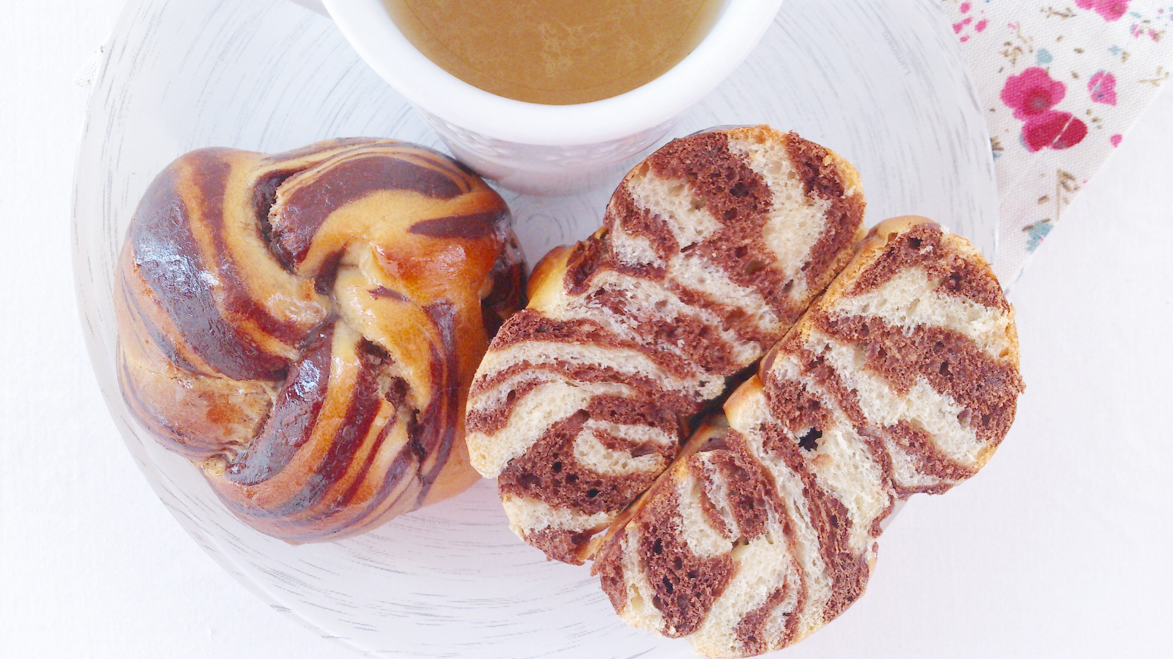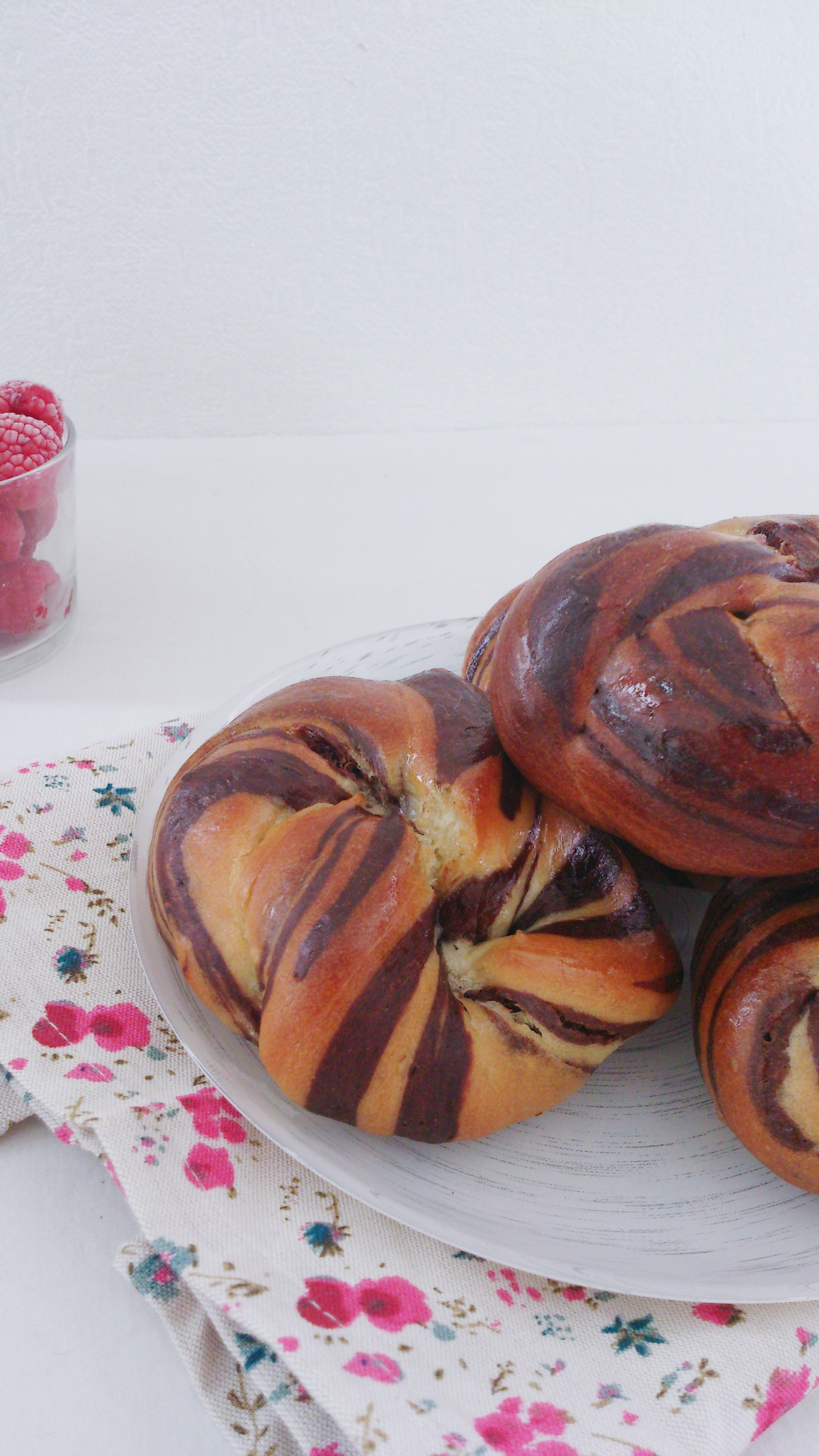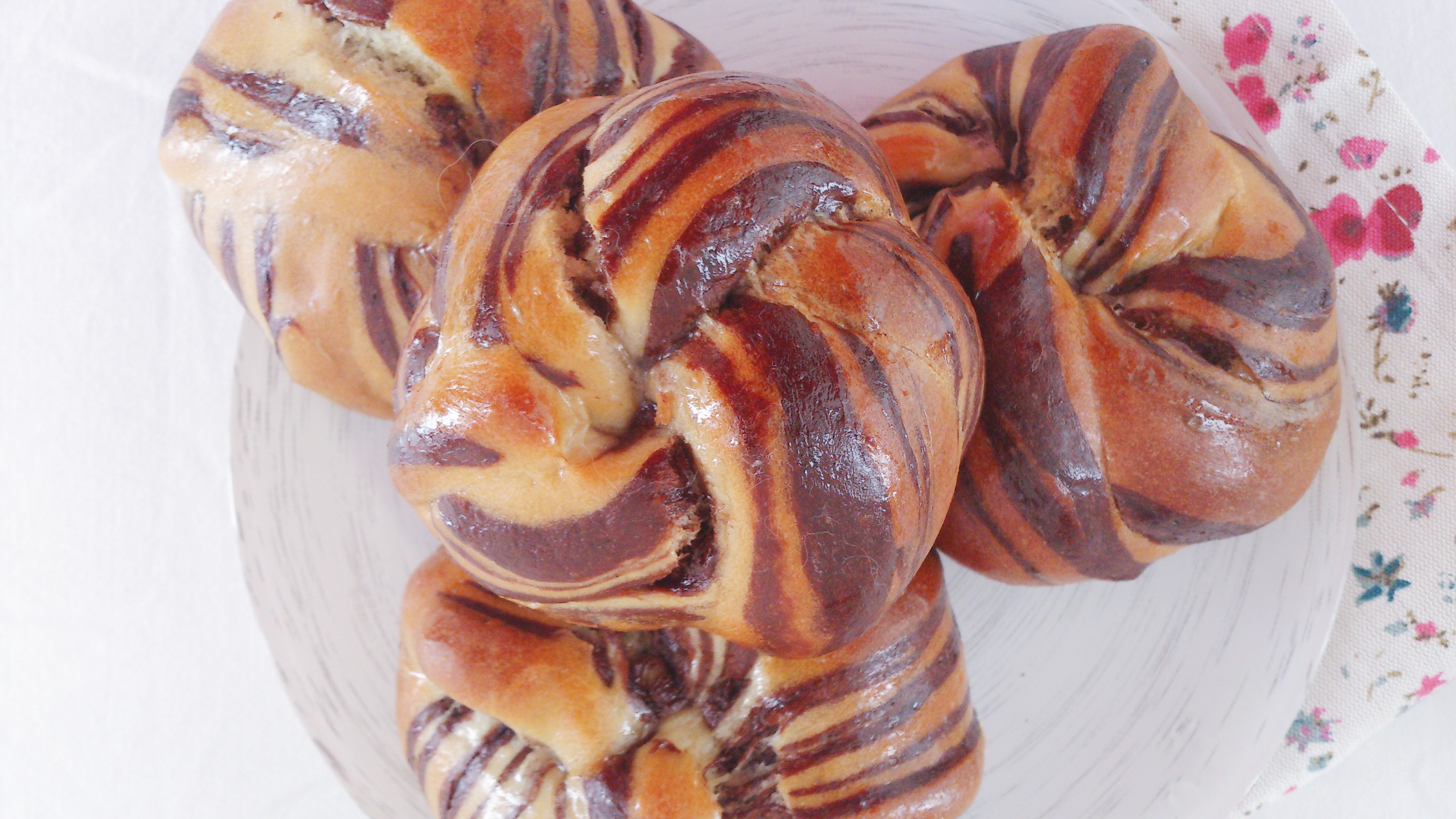 Aujourd’hui se sont des petites brioches marbrées au cacao façonnées en bouton (appris à l’école que j’ai dût reproduire pendant l’épreuve finale du cap en décembre dernier)