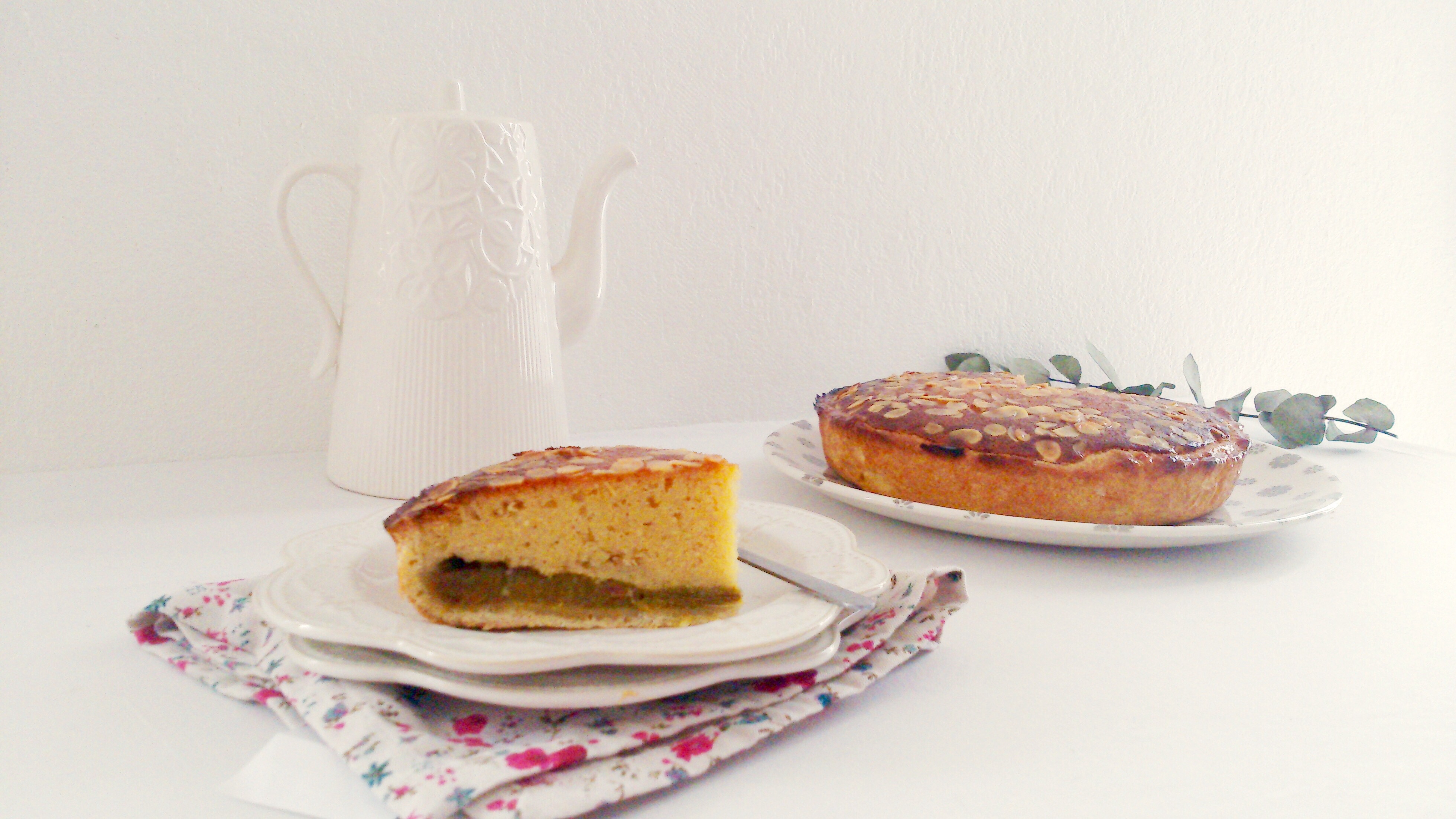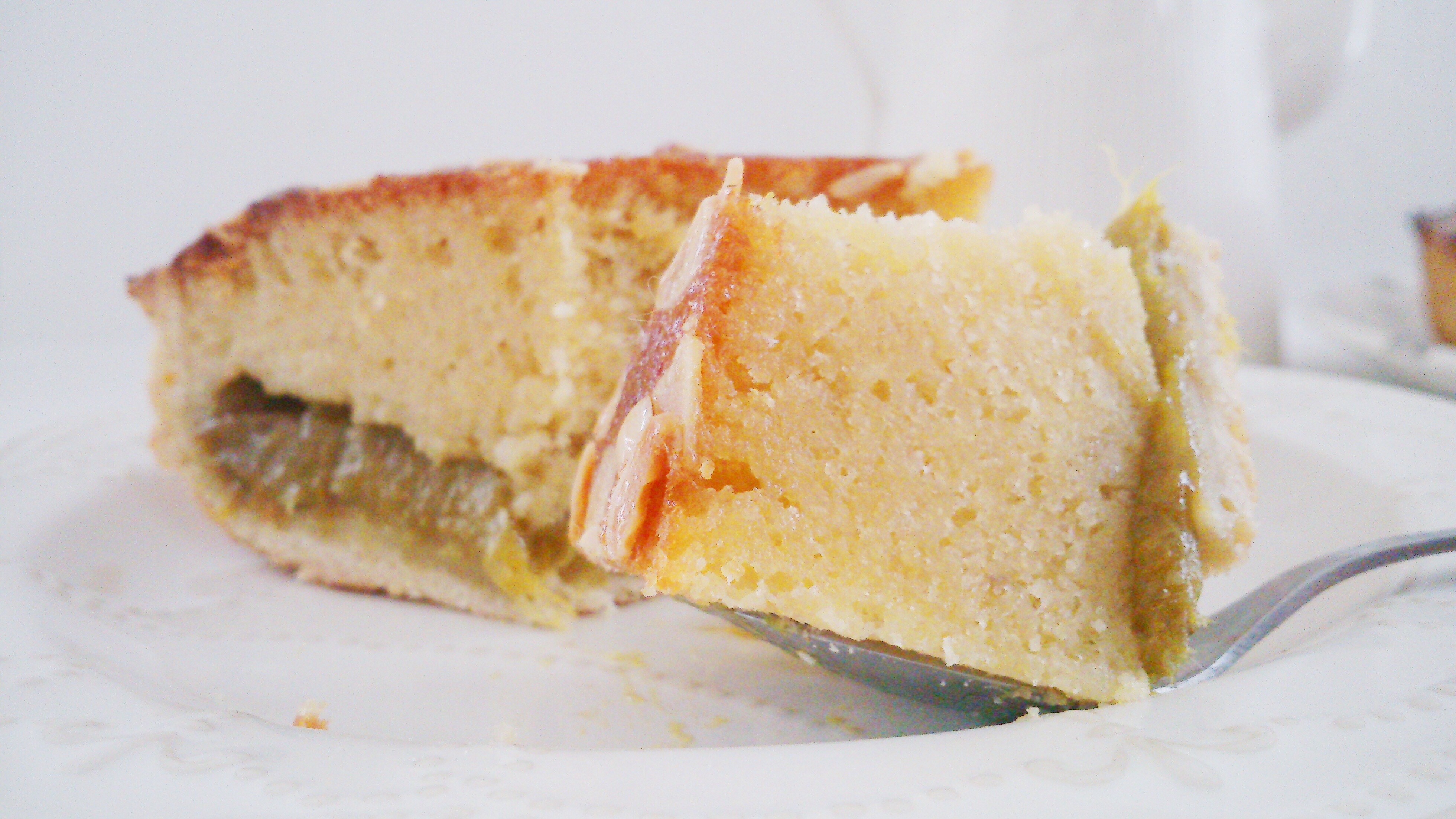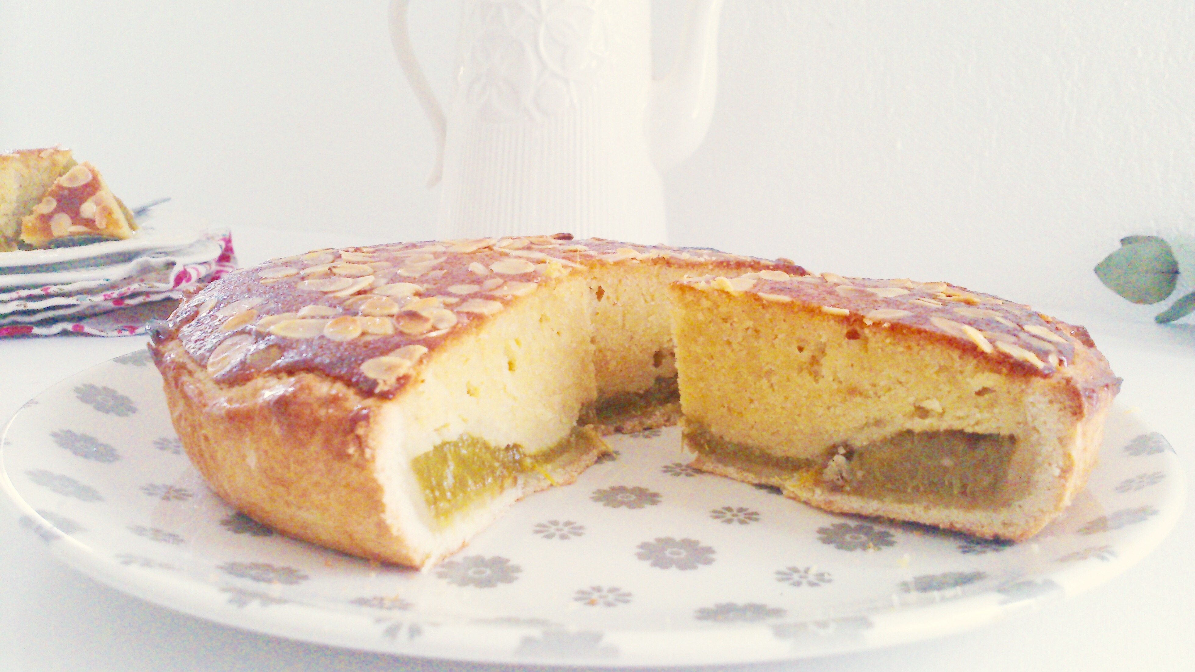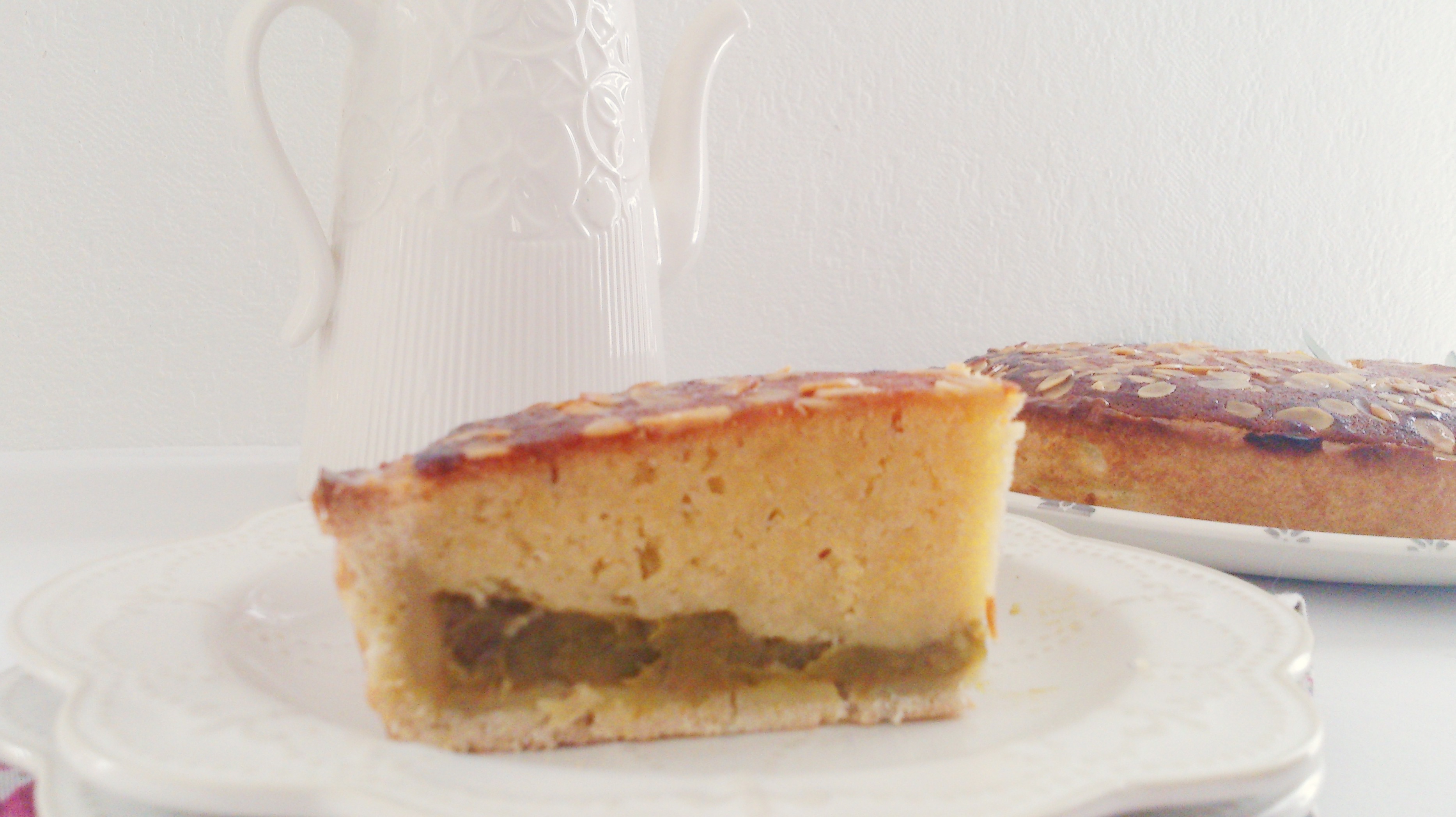 Une bonne couche d’amande qui recouvre un confit de rhubarbe doux et acidulé, une merveille j’ai adorée l’association des deux