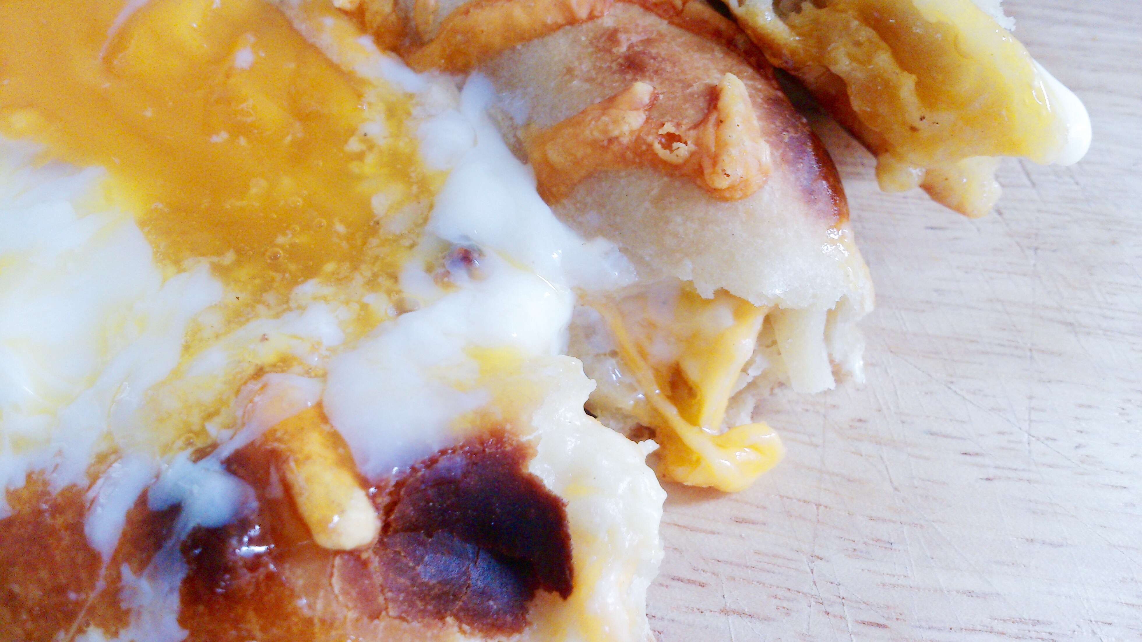 La croûte est croustillante, on la déchire et on la plonge dans le mélange de beurre,fromage et jaune d’oeuf coulant.