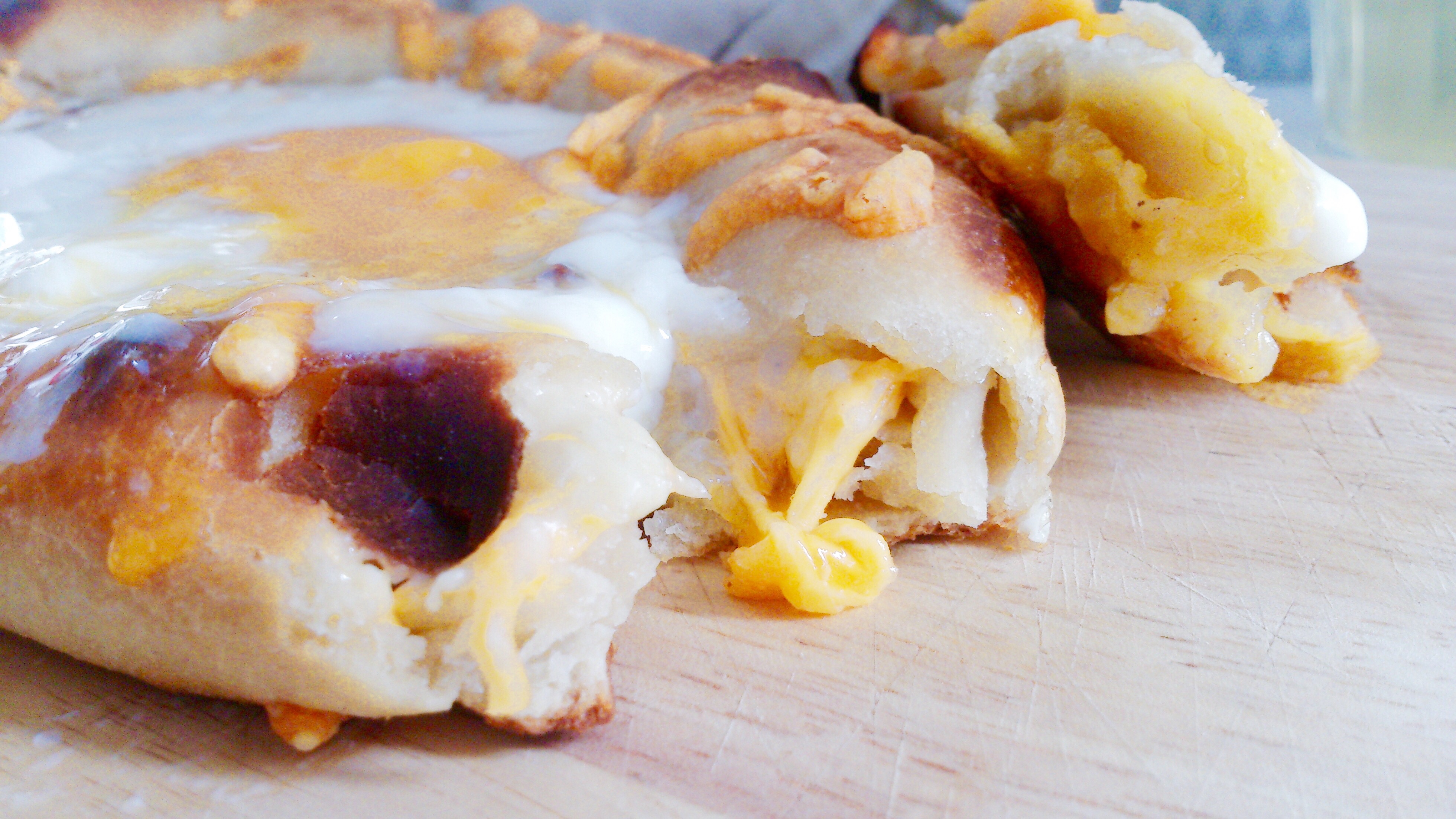 Si vous voulez garnir la croûte, déposer un boudin de garniture au fromage sur le bord avant de rouler