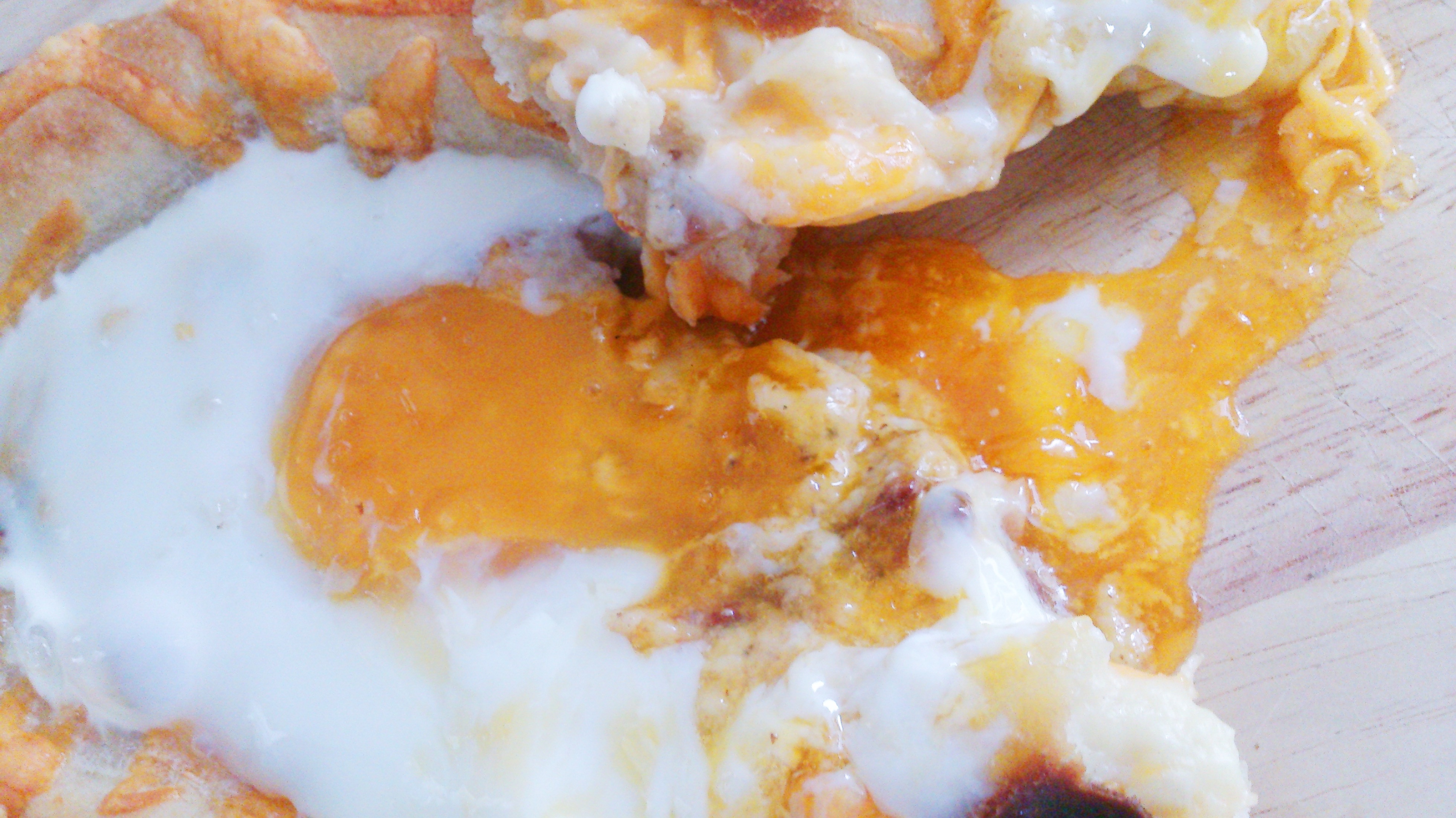 Quand la croûte est bien cuite, on casse un œuf au centre, on recuit quelques minutes (juste le temps que le blanc cuise, le jaune doit être encore coulant. Et on ajoute une lamelle de beurre sur l’œuf coulant. Vous salivez non ?