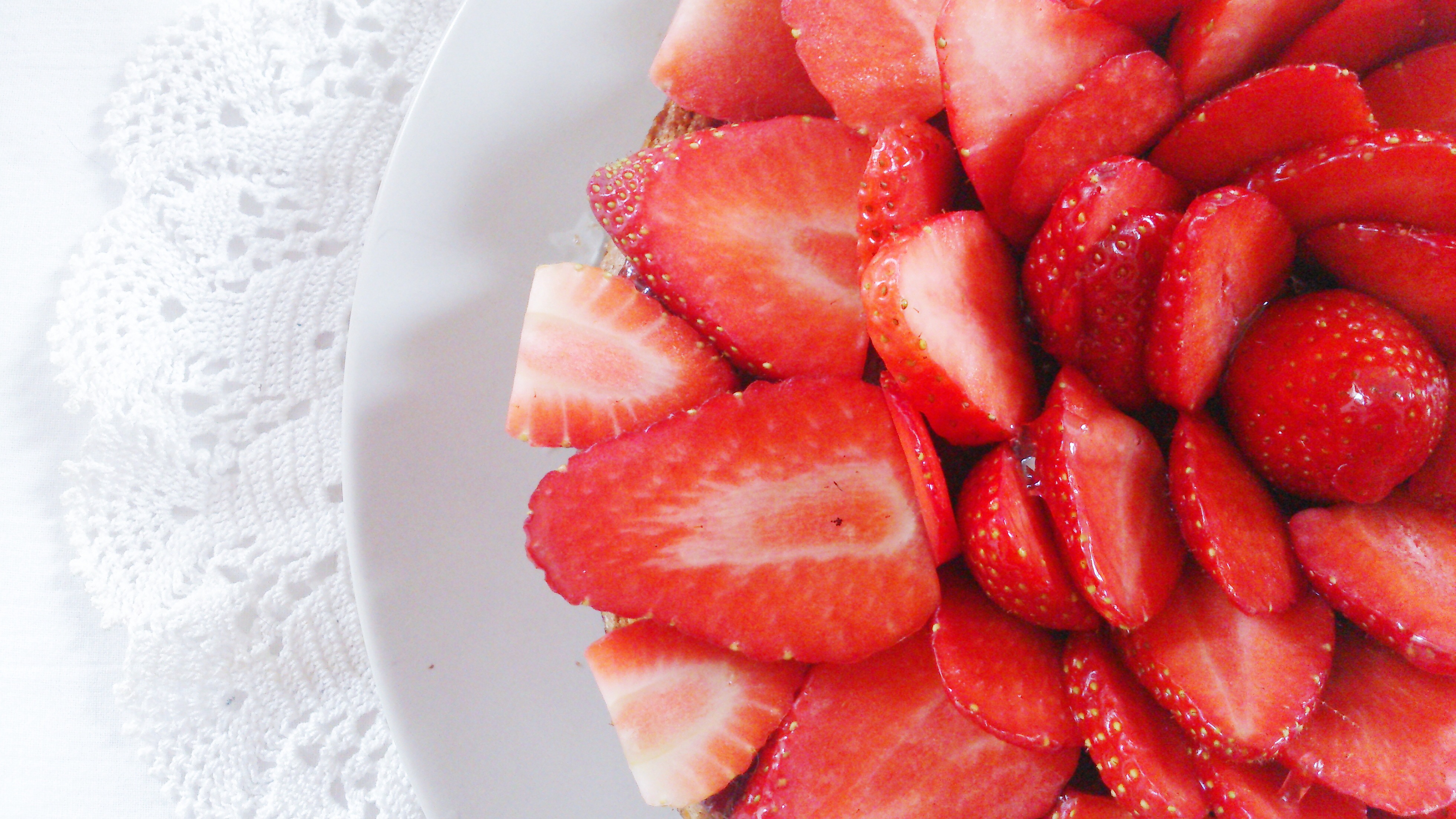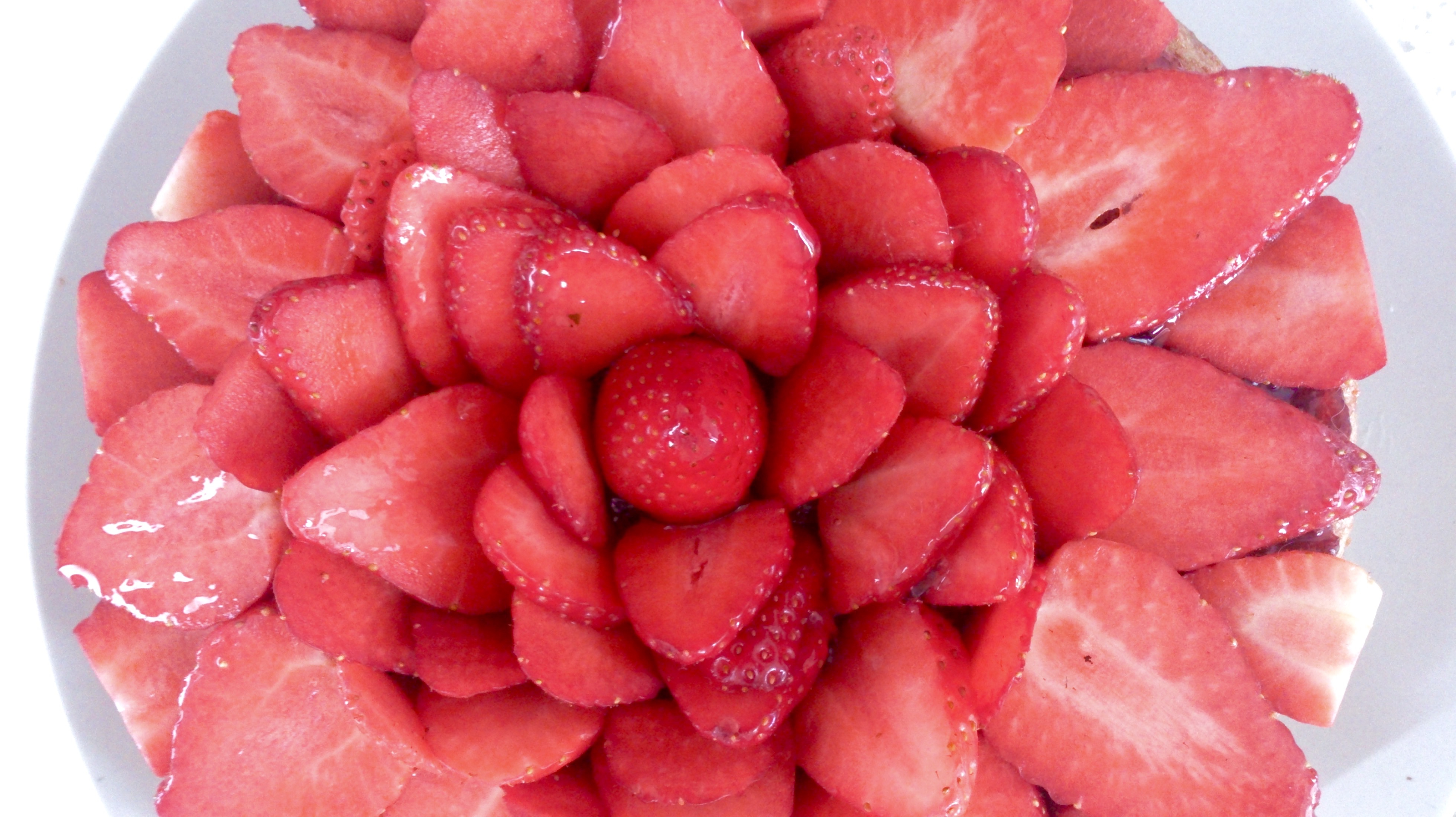 J’ai voulu une tarte toute simple, sans crème pâtissière, ni chantilly pour que l’héroïne, ce soit elle, la Fraise.