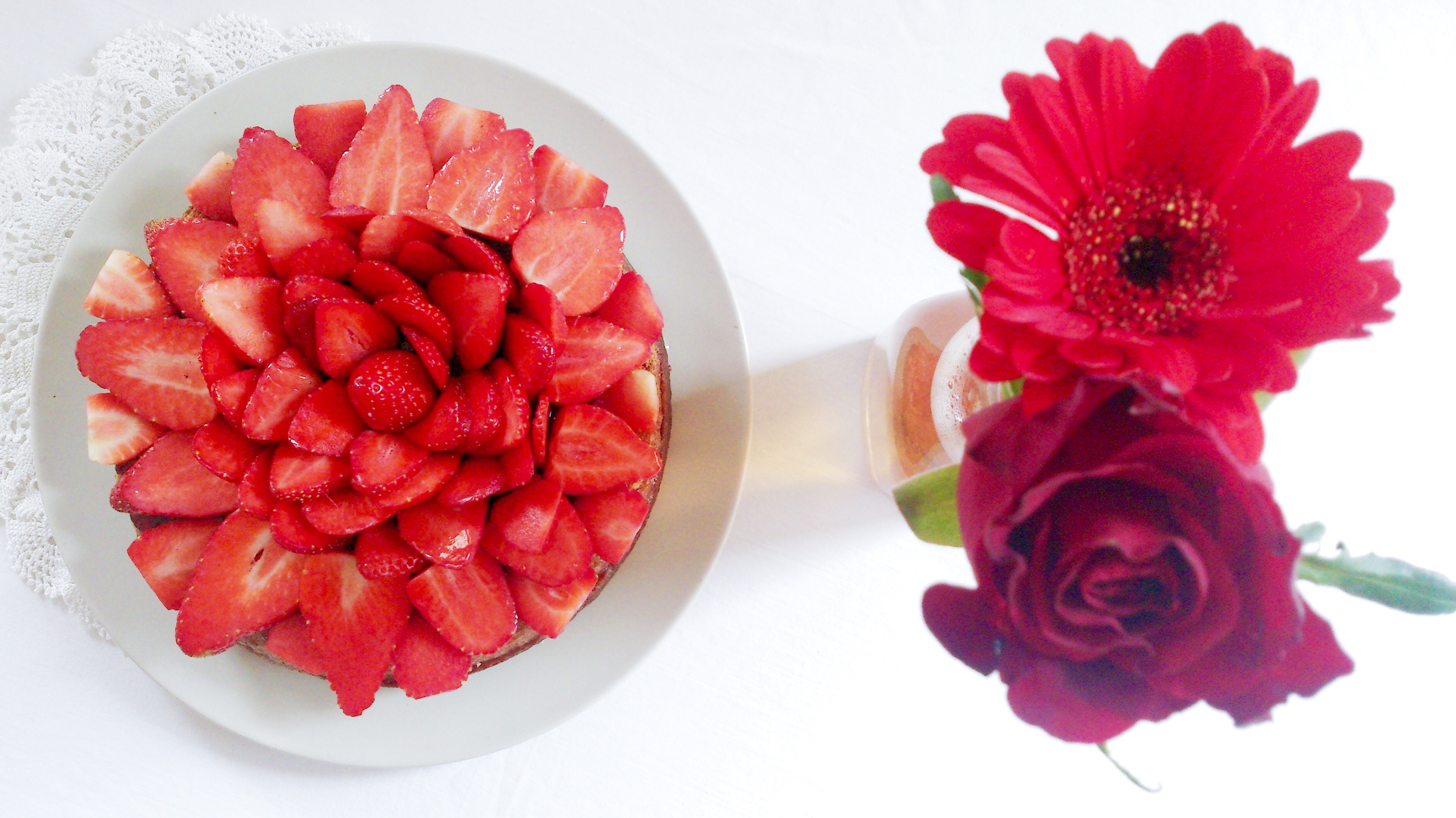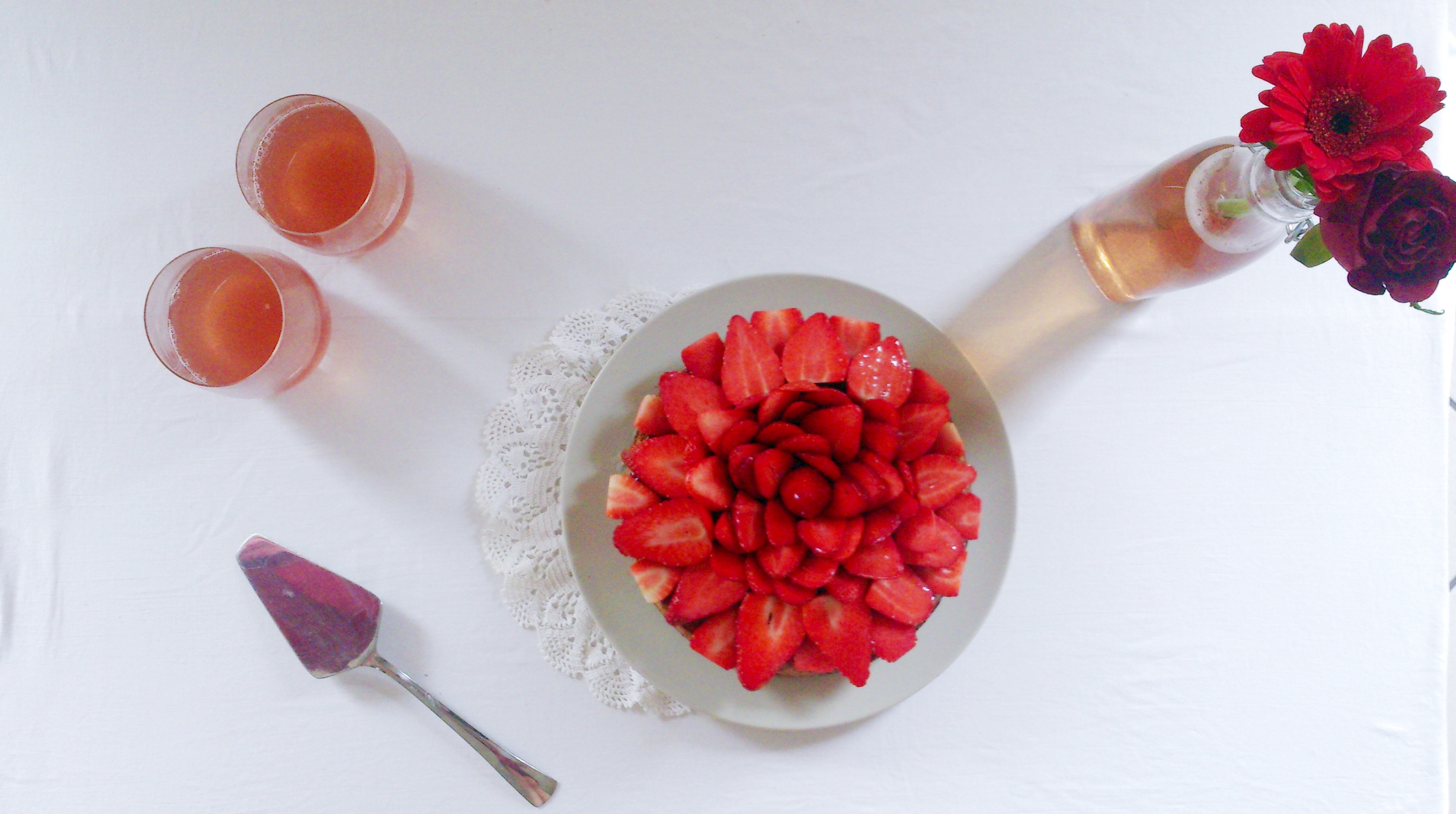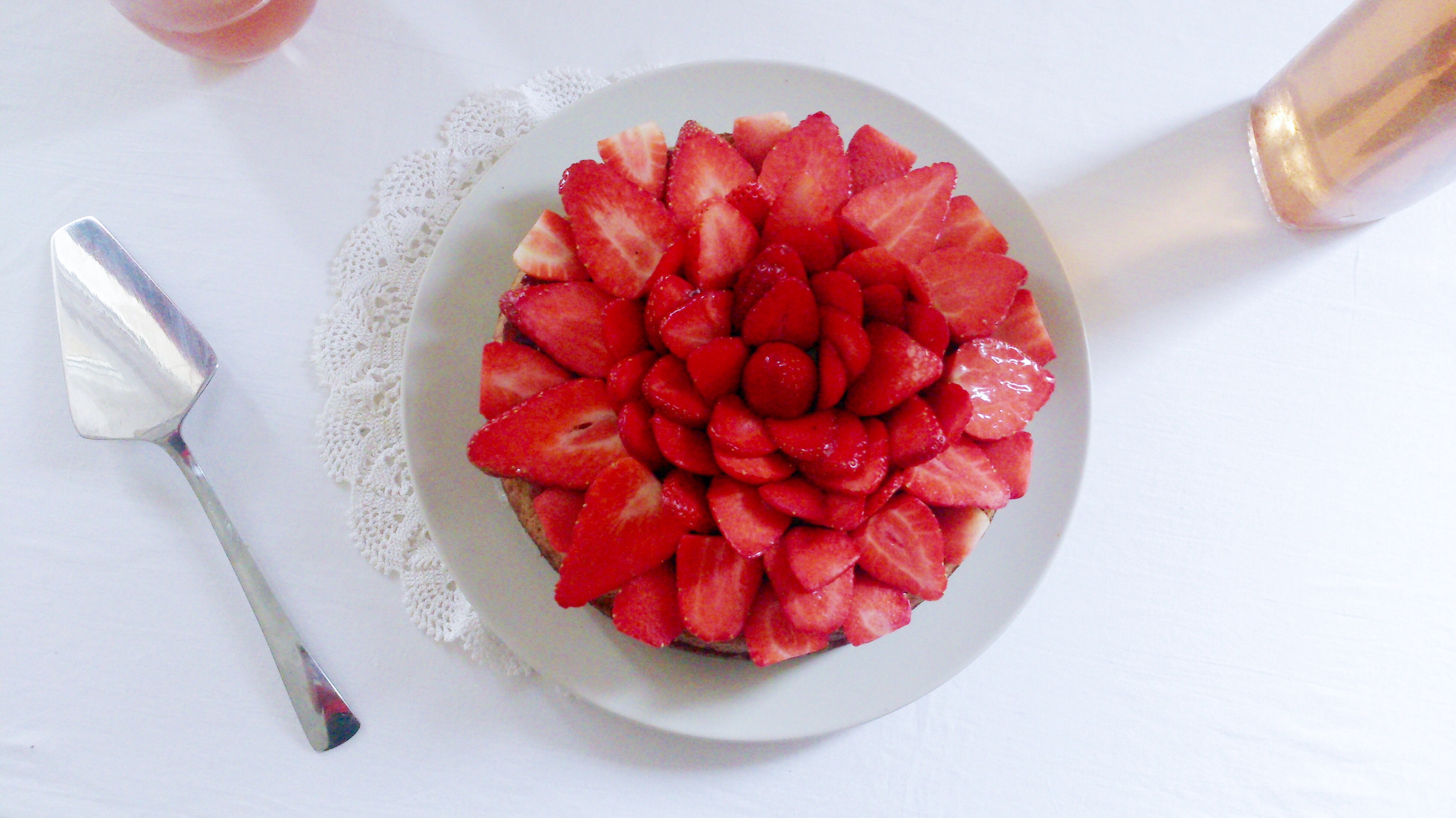 Pour fêter mon blog-anniversaire, une jolie toute-simple tarte aux fraises.