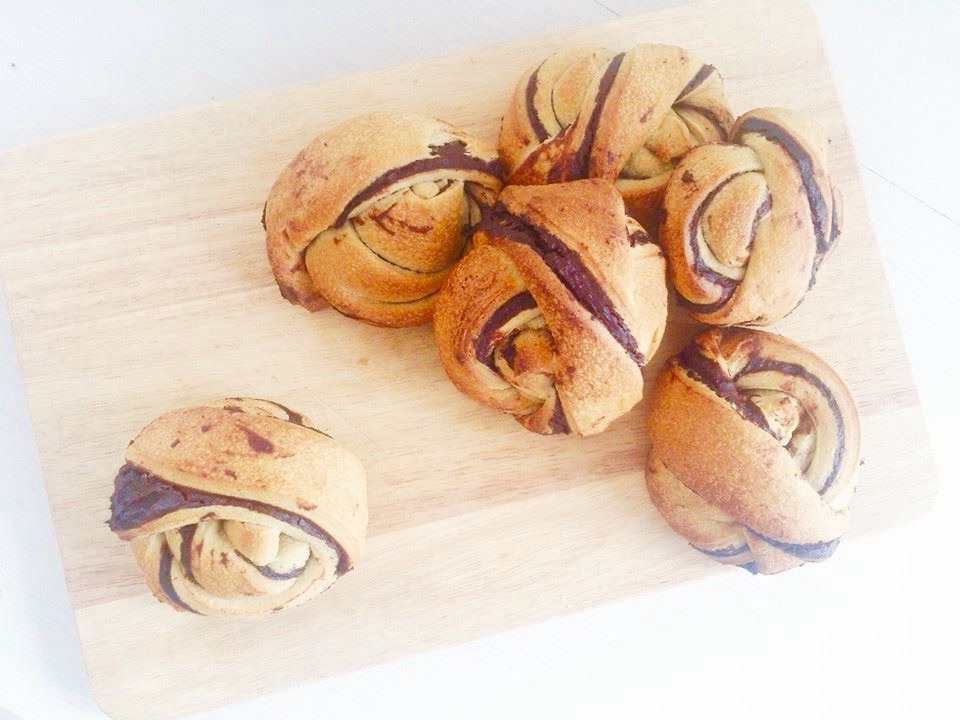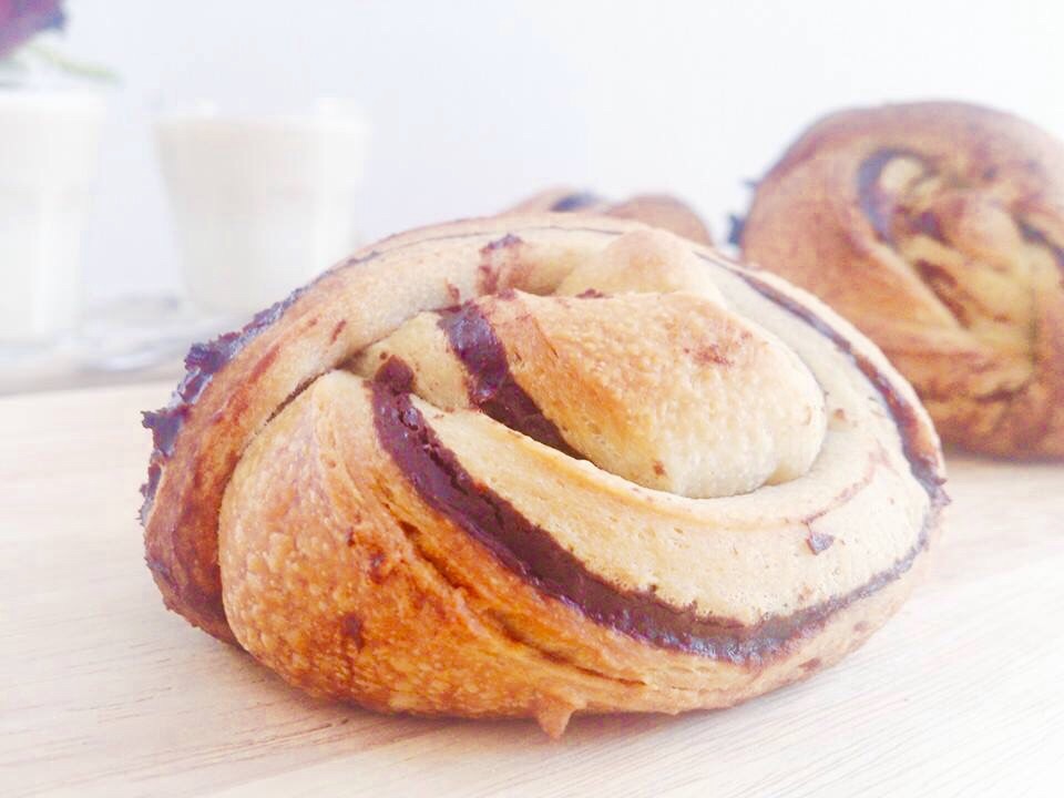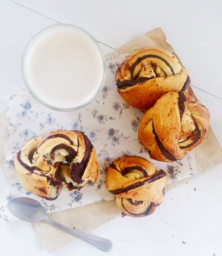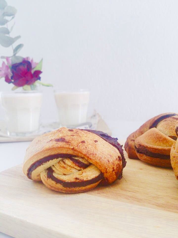 Mais j’ai eu envie de les garnir avec une pâte au cacao.