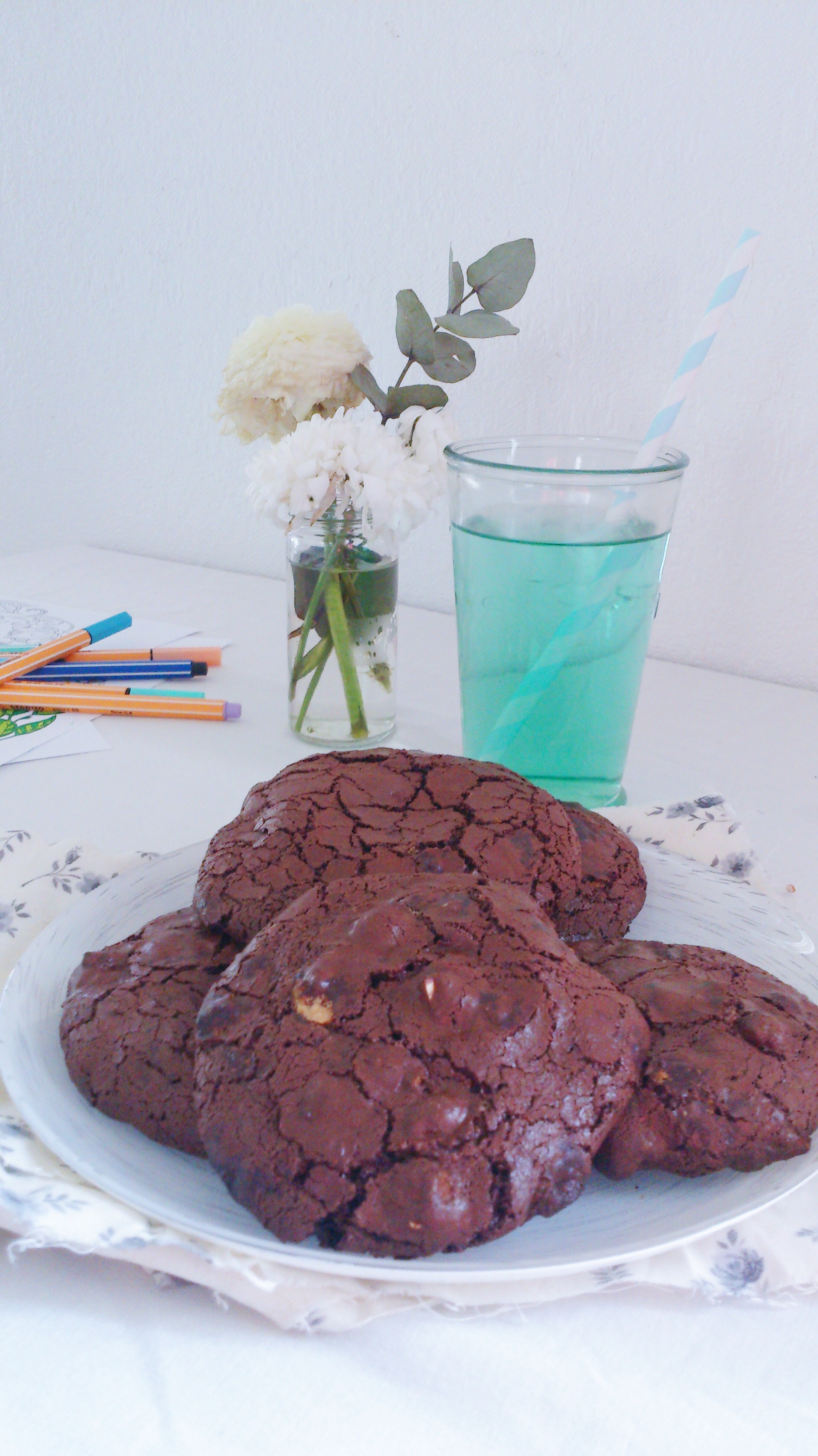 Des cookies, sans farine, sans beurre, qui utilisent seulement des blancs d’oeufs, craquelés sur le dessus, moelleux-fondant au cœur et ayant une consistance qui ressembles très fortement aux macarons (les amandes en moins)