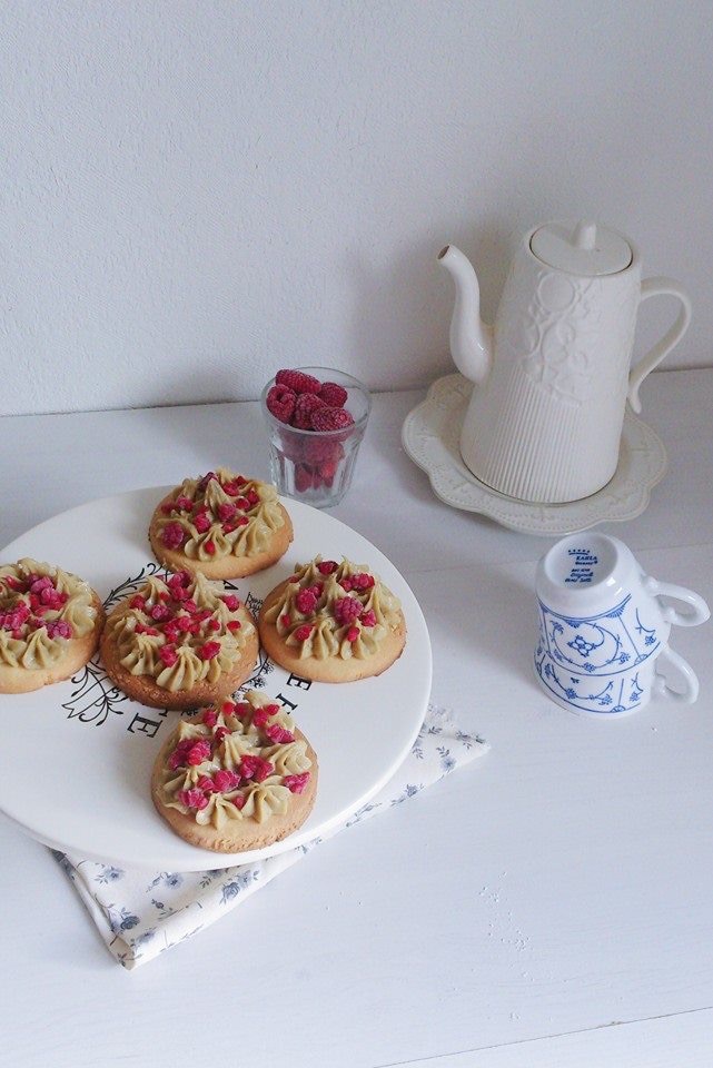 Je l’ai simplement pochée sur mon sablé (un peu épais) et parsemé de framboises