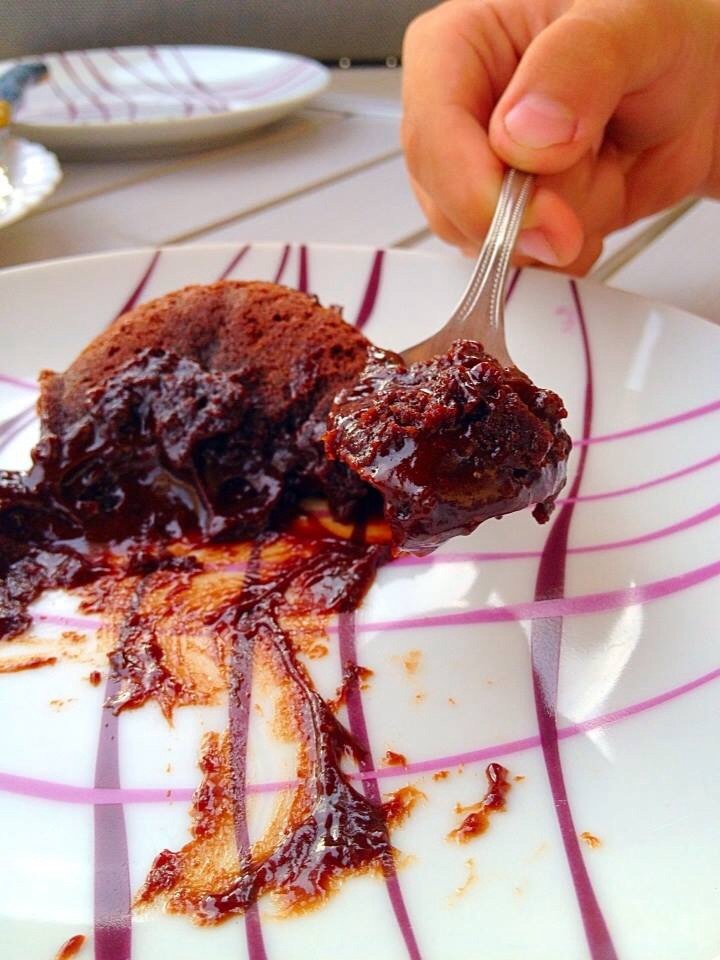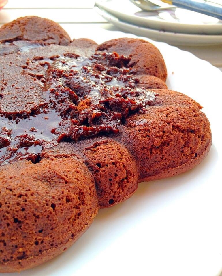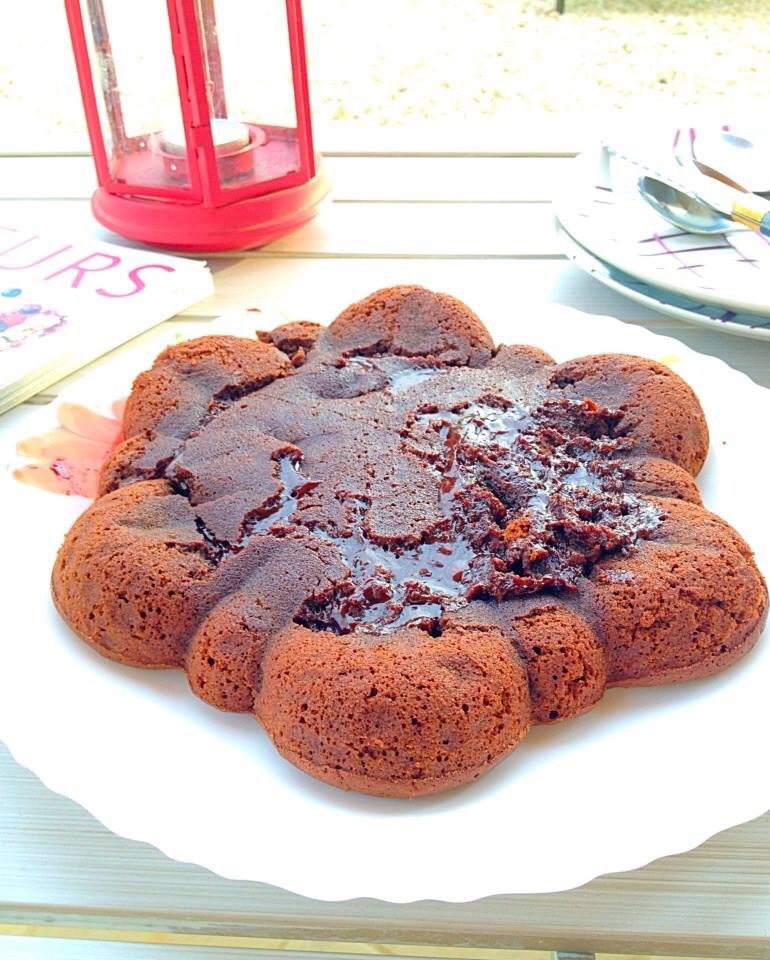 Dans sa recette elle décrivait sa texture en deux parties : un bord cuit comme un cake et un cœur tendre et crus comparable a de la crème brûlée.