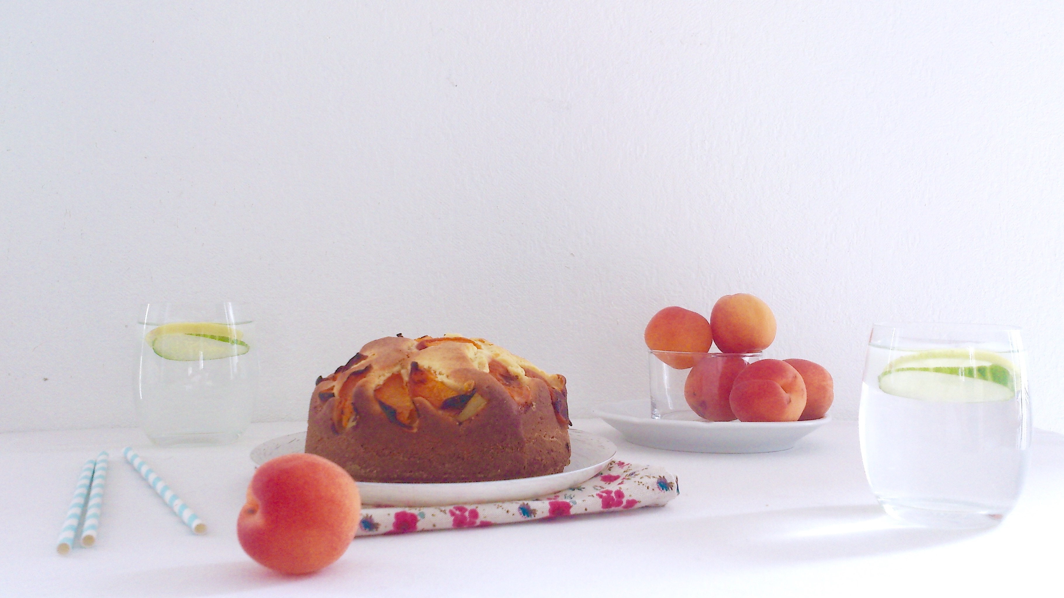125g de yaourt au lait de chèvre, 250g de farine, 1/2 sachet de levure chimique, 125g de sucre, 65g d’huile d’olive (ou celle de votre choix), 3oeufs, 100g de fromage de chèvre frais (ou en bûche) en dés et une 10ènes d’abricots