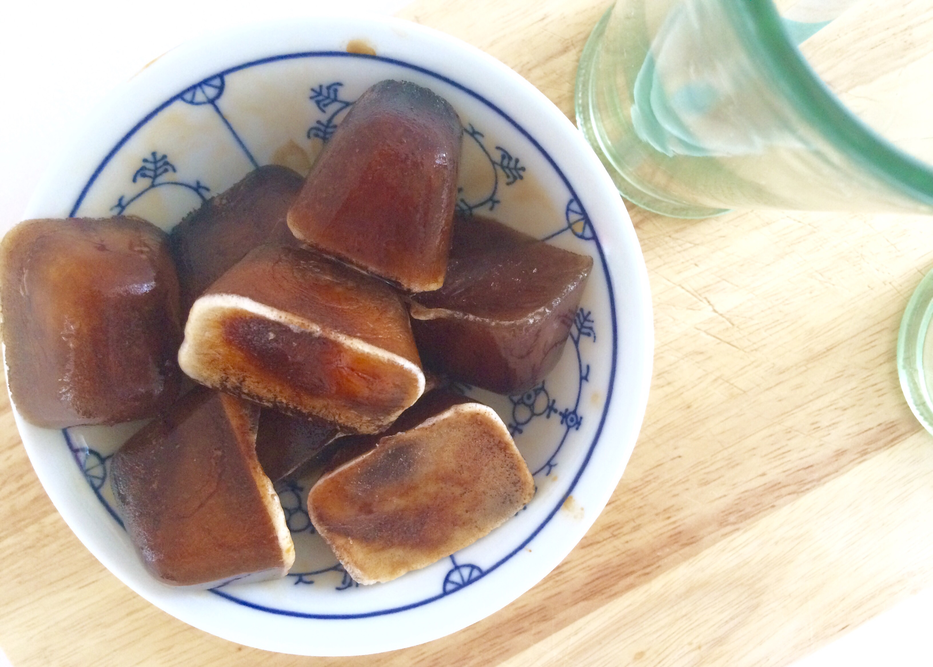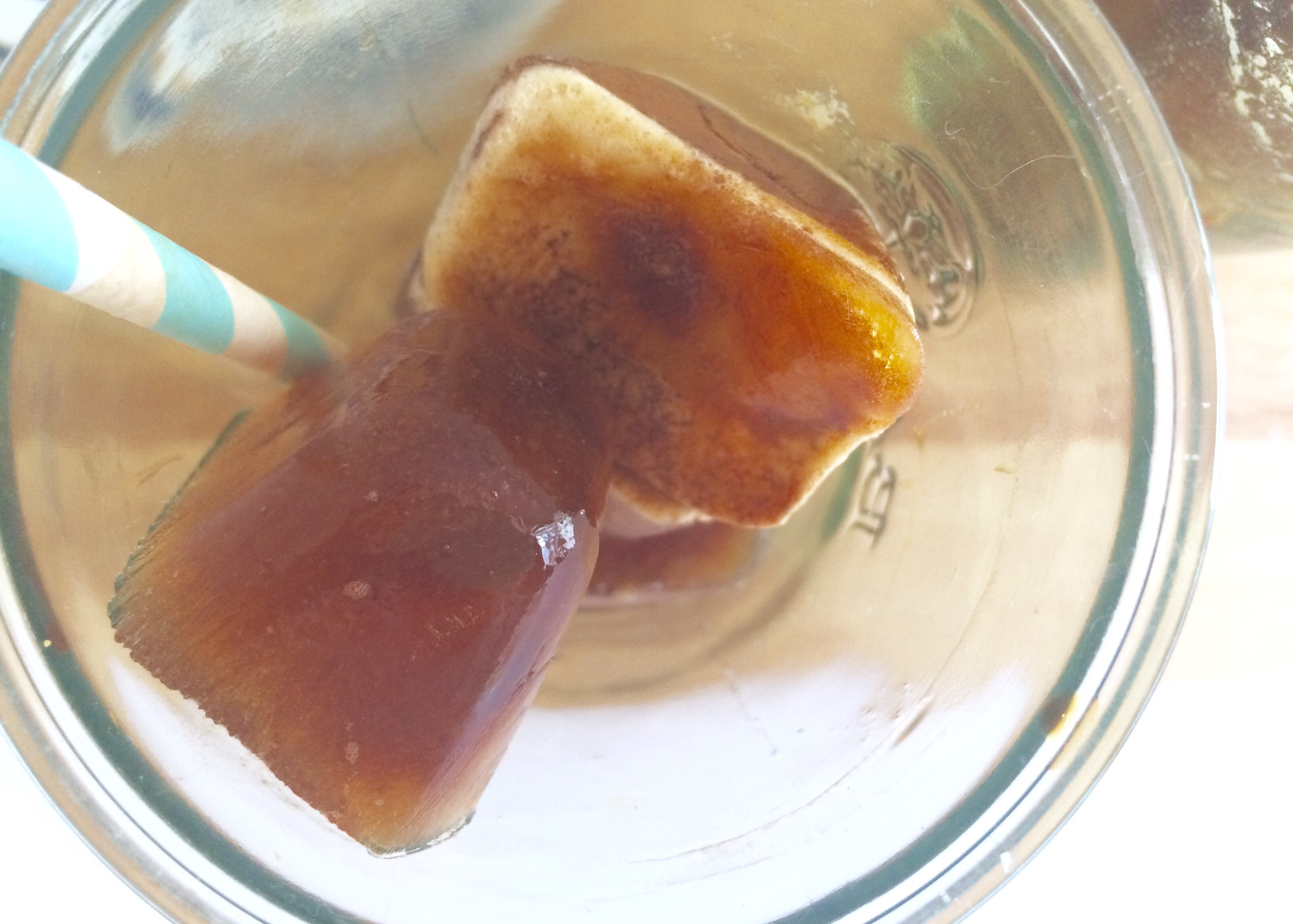 – Ensuite, des glaçons de café. C’est enfantin ; faite couler votre café favoris dans des moules à glaçons et les fautes prendre quelques heures au congélateur.