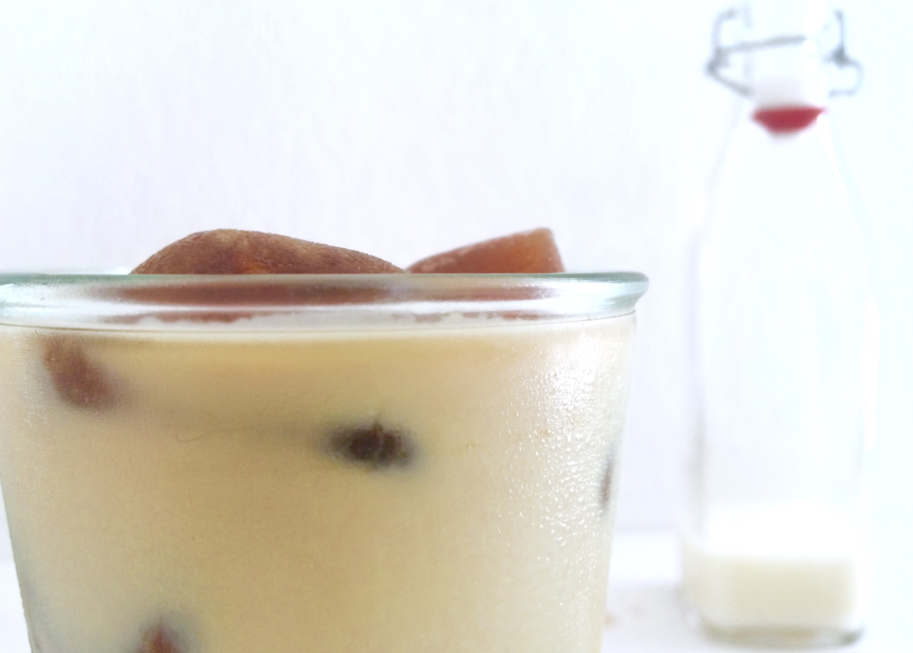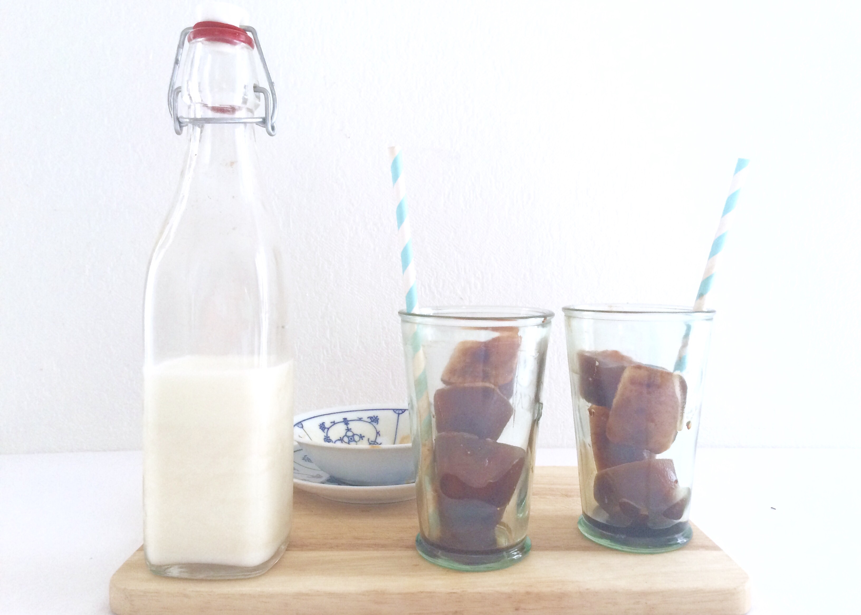 Les glaçons vont fondre doucement et se mélanger au lait. Pour lui donner une jolie couleur café ( couleur café-que j’aime ta couleur café…. Ok ok c’était facile)