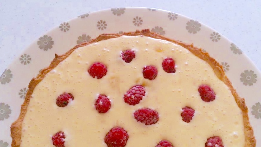 Quand elle est légèrement refroidie, verse la panna-cotta sur le fond de tarte