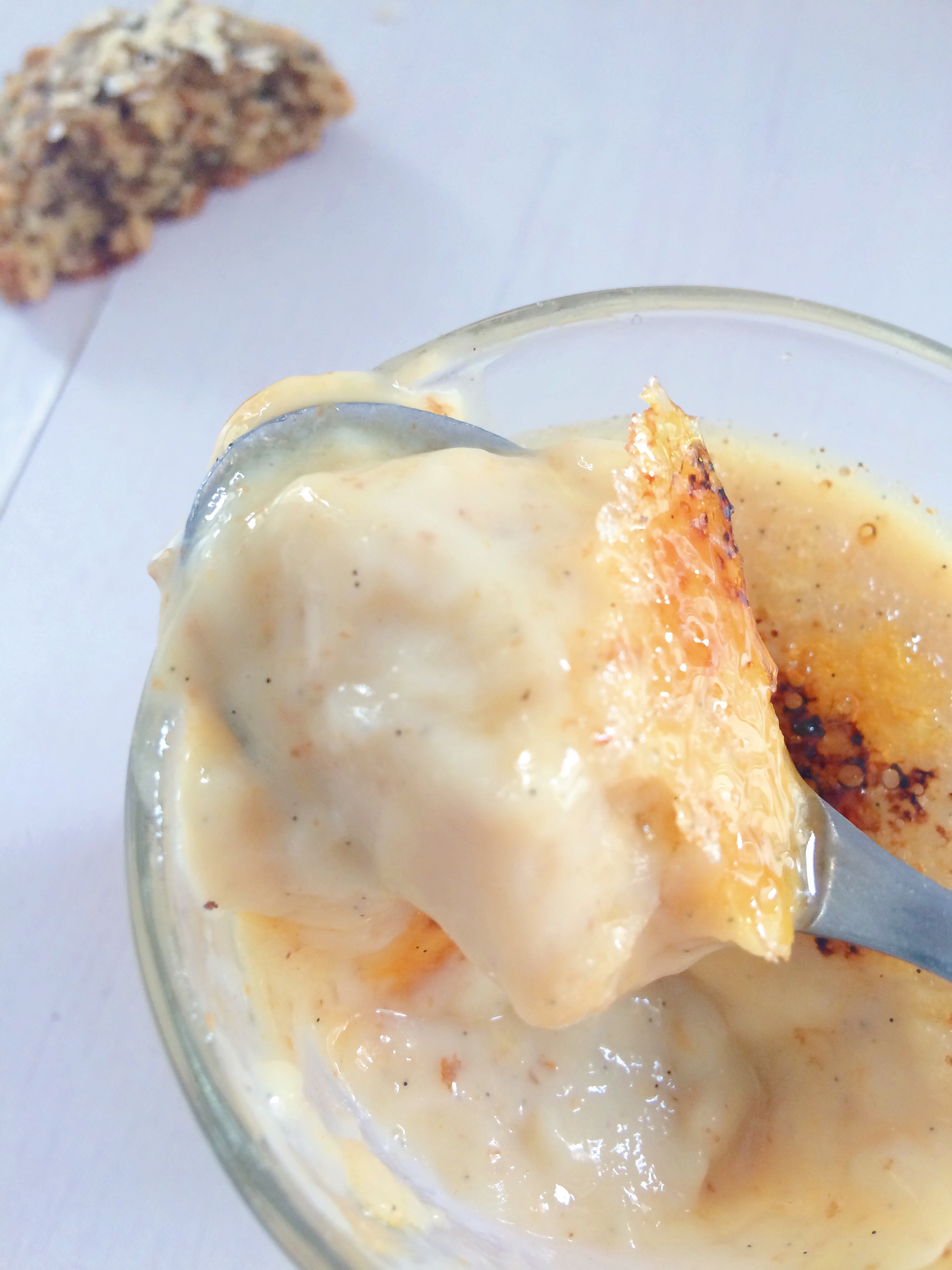 Saupoudrer de sucre roux et faire dorer légèrement avec un chalumeau (ou sous le gril du four)