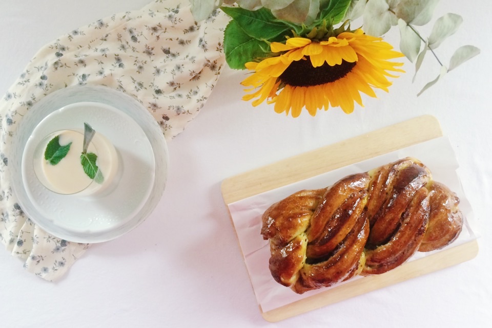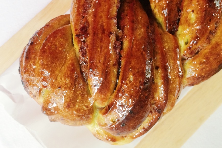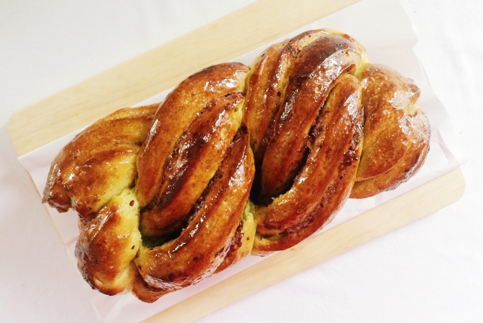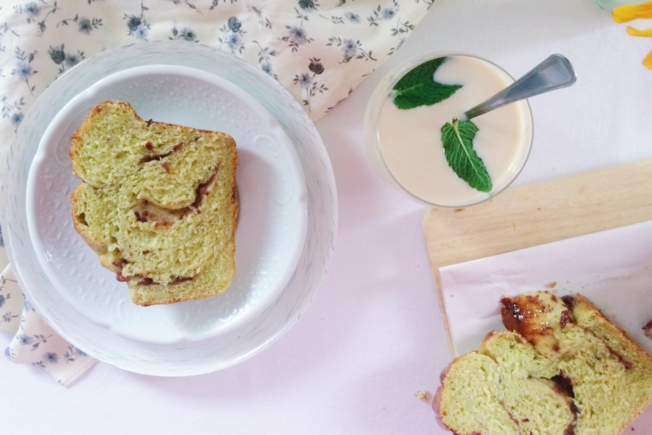 Il me restait un peu de pâte dans le frigo. Après en avoir mangée dans mes yaourts, sur mes tartines au petit-déjeuner j’ai décidée de faire une torsade au thé matcha.