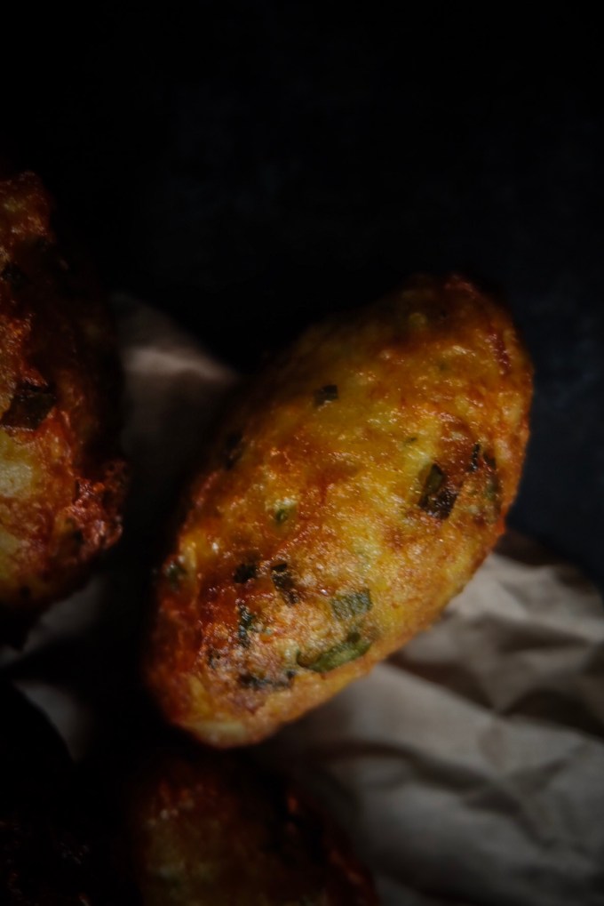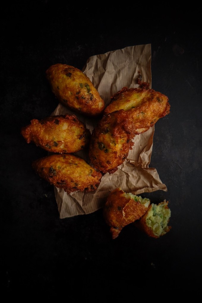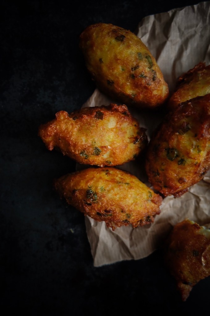 Une sorte de purée de pommes de terre à la morue que l’on façonne en quenelles. Qui sont frites dans un grand bain d’huile.