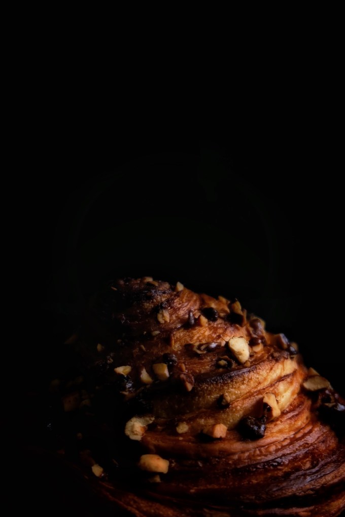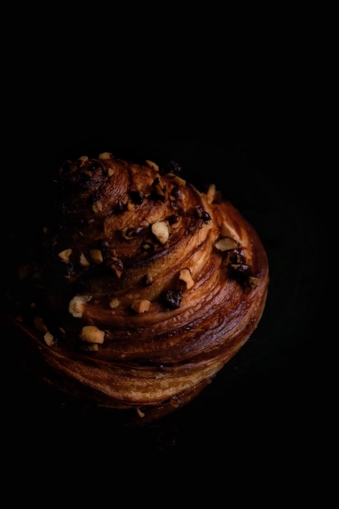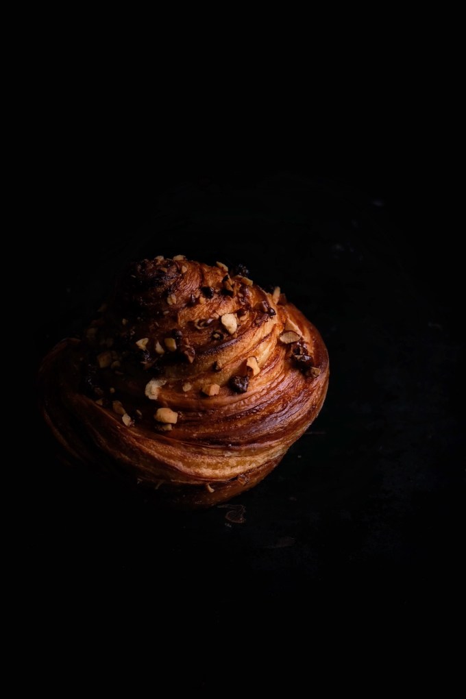Un croissant qui se prenait pour un escargot au beurre de cacahouètes.