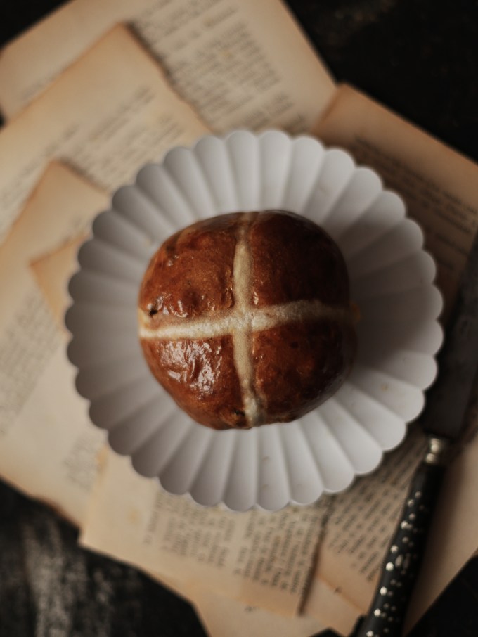 Pour moi, Pâques rime forcément avec Hot cross buns, au levain évidement.